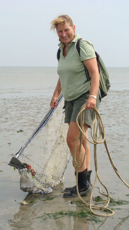 Olga heeft voor basisschoolgroepen zelf excursies ontworpen voor de kwelder bij Moddergat en naar de vaargeul bij Hoek van de Bant en heeft op deze plekken de afgelopen jaren duizenden leerlingen de mooiste wadschatten laten ontdekken.