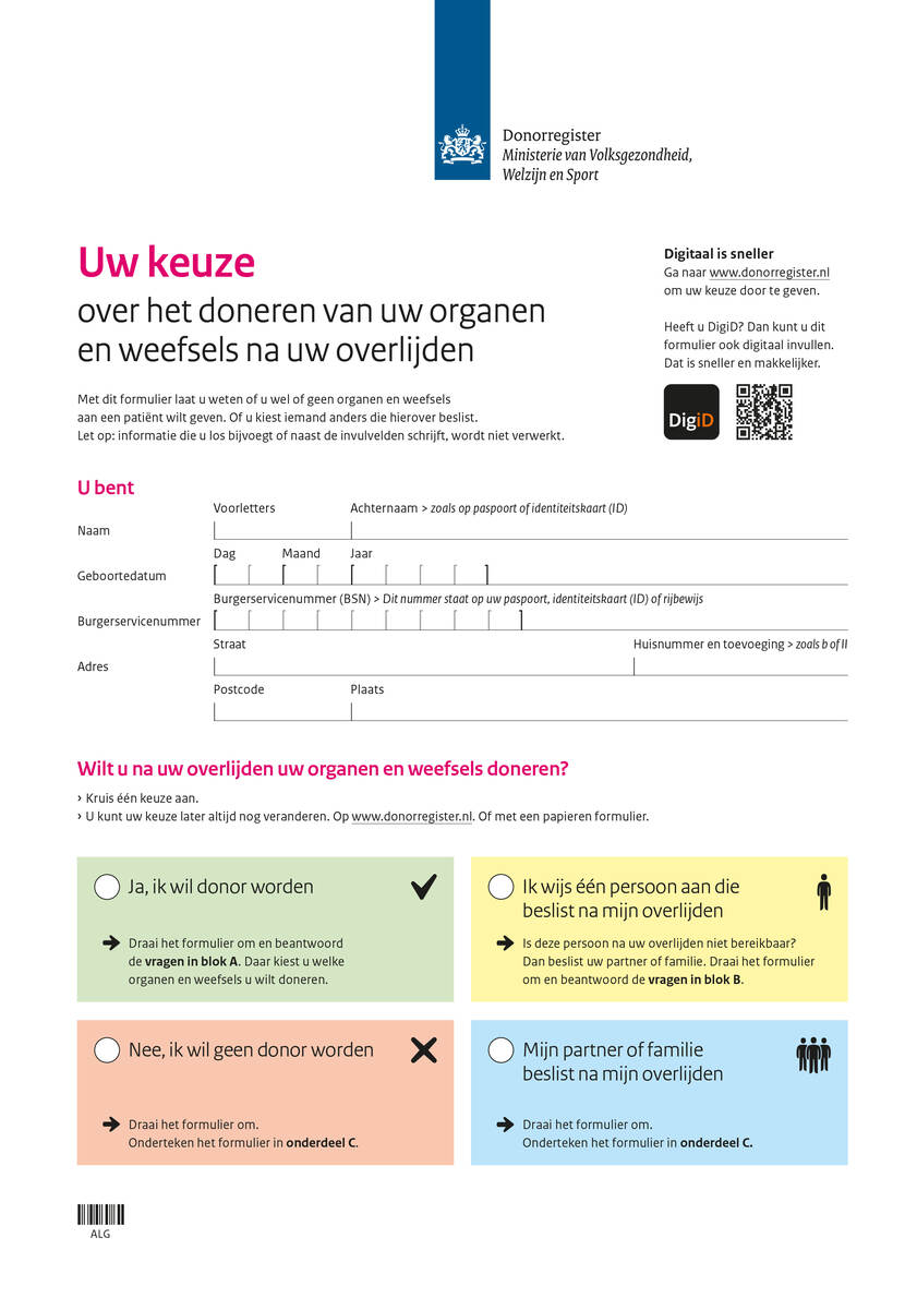 10,7 miljoen volwassenen hebben hun keuze ingevuld in Donorregister