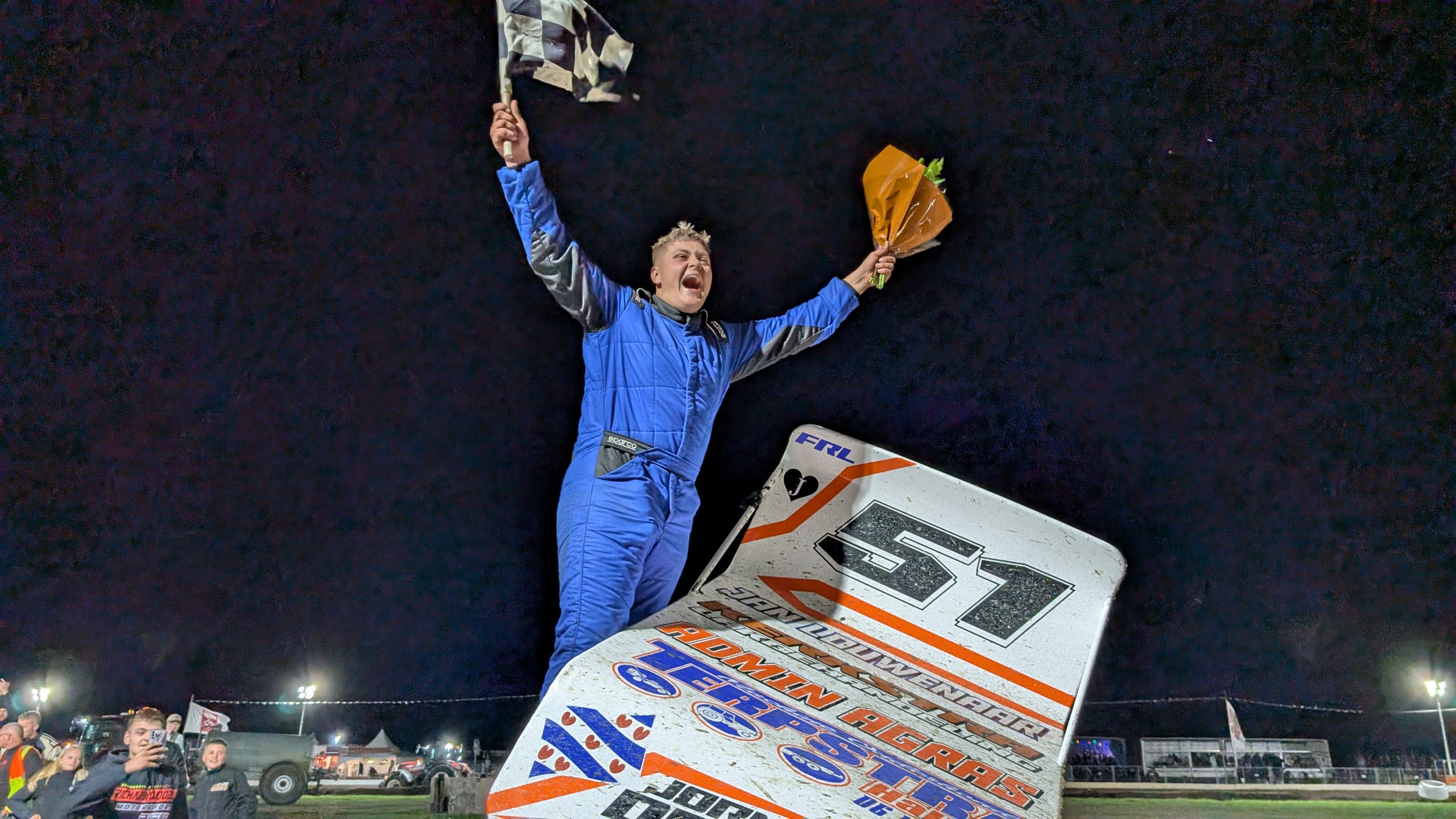 Jorn de Vries uit Hallum pakt zijn eerste overwinning in de Stockcar F1 finale op Autocross Hallum