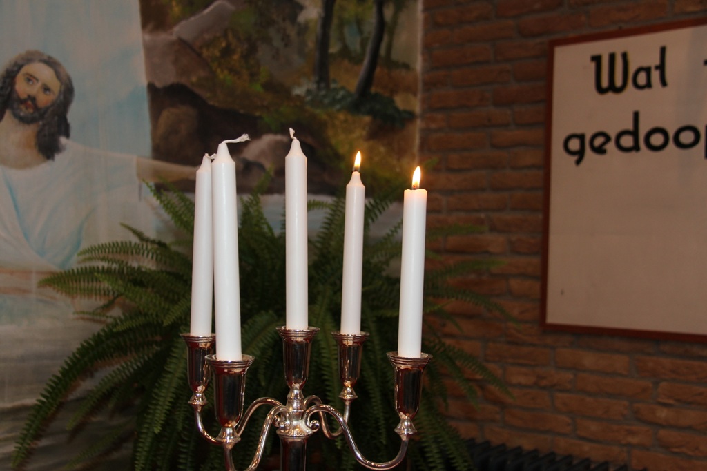 Br. Jaap Dijkstra had de algehele leiding van de dienst. Nadat de gemeente en in het bijzonder de vele gasten welkom geheten waren, werden de twee adventskaarsen aangestoken door drie 80-jarigen, zr. Hennie Kingma, br. Folkert Bolhuis en br. Pieter de Vries. In deze Adventstijd zien we uit naar Kerst: Het waarachtige licht, dat ieder mens verlicht, was komende in de wereld! (Joh. 1:9). Daarom was het eerste lied dat gezongen werd zo toepasselijk: “Heer, Uw licht en Uw liefde schijnen, waar U bent zal de nacht verdwijnen!”