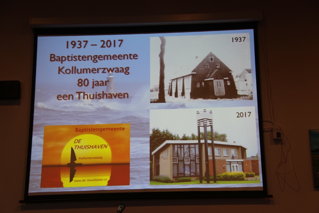 Zondag 10 dec was er een bijzondere dienst in Baptistengemeente De Thuishaven te Kollumerzwaag. De dienst stond namelijk in het teken van de herdenking dat de gemeente 80 jaar bestaat! Op 9 december 1937 werd de pas opgerichte gemeente te Zandbulten opgenomen in de Unie van Baptistengemeenten in Nederland. Deze jubileumdienst was voorbereid door de vier voorgangers van de gemeente, br. Jaap Dijkstra, ds. Jan Foppen, br. Piet van Hijum en br. Arend Westra