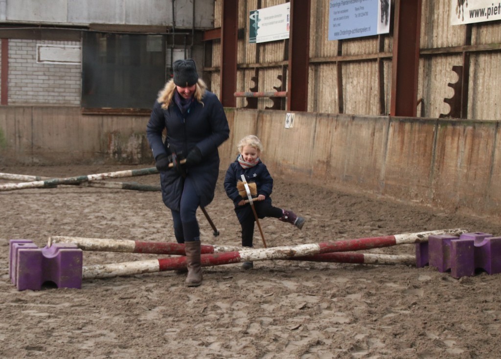 Met de teugels in de ene hand en de stok in de andere, springen de ruiters over hindernissen en maken dressuur pasjes. Het zijn stokpaardrenners. Tijdens deze twee dagen was het gezellige maar ook leerzame dag.