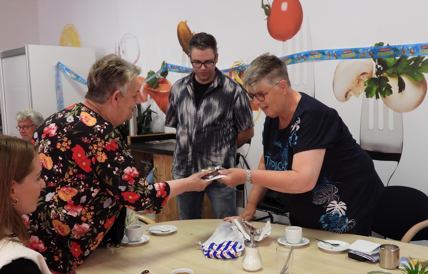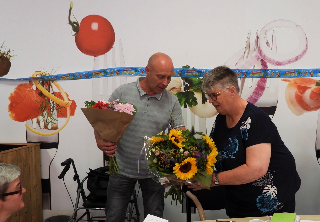 Na een toespraak waarin de loopbaan en de persoonlijkheidseigenschappen aan bod kwamen, waren er de bloemen en cadeaus. Er was een toast en Geeske werd bedankt en een goede toekomst toegewenst. Even na vieren was het dan echt gebeurd. Geeske gaat zich nog niet vervelen, want 2 keer per week dagbesteding zorgt er voor dat ze in beweging blijft en onder de mensen komt.