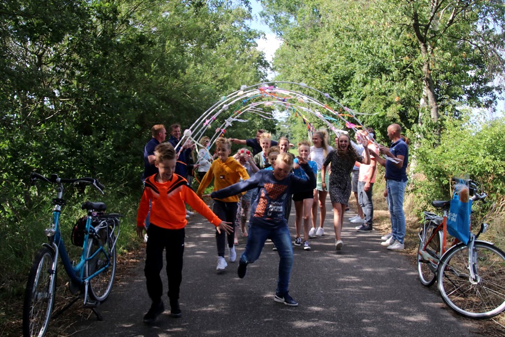 Afgelopen dinsdag was het afscheid van groep 8 van de Prins Bernhardschool uit Kollum. Het begon allemaal met een boottocht vanaf de Weterlelie naar camping de Poelpleats. Hier stonden de ouders klaar met een erehaag.