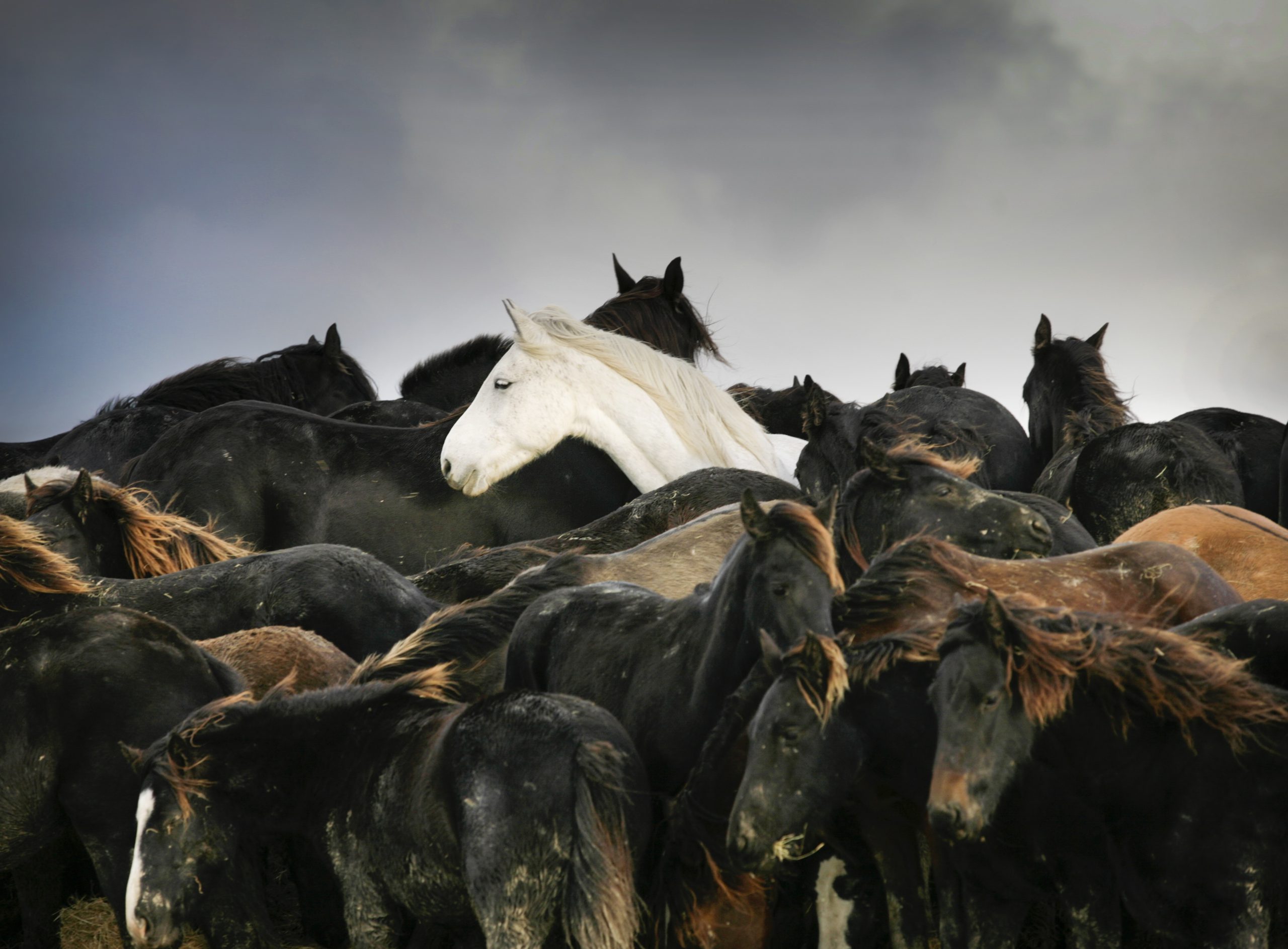 ‘Freya’ heet de witte merrie in het midden van dit beeld. Freelance fotojournalist Laurens Aaij (1976) maakte de opname in het Friese Marrum, waar zo’n tweehonderd paarden door hoog water na een storm waren komen vast te zitten op een dobbe in de Waddenzee. Dagenlang hield het nieuws Nederland in de greep. Aaij voer mee met een brandweerbootje en kon van dichtbij fotograferen. Door van de opvallend witte, ‘eenzame’ merrie de hoofdpersoon te maken binnen een verder eenkleurige massa, werd het voor het publiek gemakkelijker om zich met de dieren te identificeren. Dat was anders geweest wanneer hij, zoals veel verslaggevers dat deden omdat het moeilijk was erbij in de buurt te komen, de paarden van veraf had gefotografeerd. Dergelijke beelden lieten de situatie duidelijker zien, maar brachten de emotie niet over. In 2007 won Aaij met deze foto de Zilveren Camera voor de beste nieuwsfoto van het jaar. De jury sprak van het Rembrandteske licht in de foto. Daarmee werd – waarschijnlijk onbedoeld – duidelijk dat de Marrum-foto symbool kon staan voor twee ontwikkelingen die de laatste decennia hand in hand gaan: de ver esthetisering van de persfotografie en de verschuiving in de verslaggeving van feiten naar emotie.