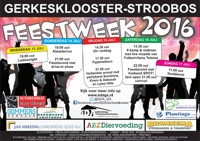 Zondag wordt de feestweek afgesloten met de tentkerkdienst. Thema voor deze morgen is: Bouwval gezocht, onder leiding van M. Stougie – de Wit uit Oostermeer. Koffie staat klaar om 10.00 uur. Voor meer informatie kijkt u op www.sdags.nl of op Facebook SDA Gerkesklooster Stroobos. Jaarlijks een feestweek organiseren is niet vanzelfsprekend. Ze willen daarom ook al de sponsors en donateurs bedanken voor hun steun.
