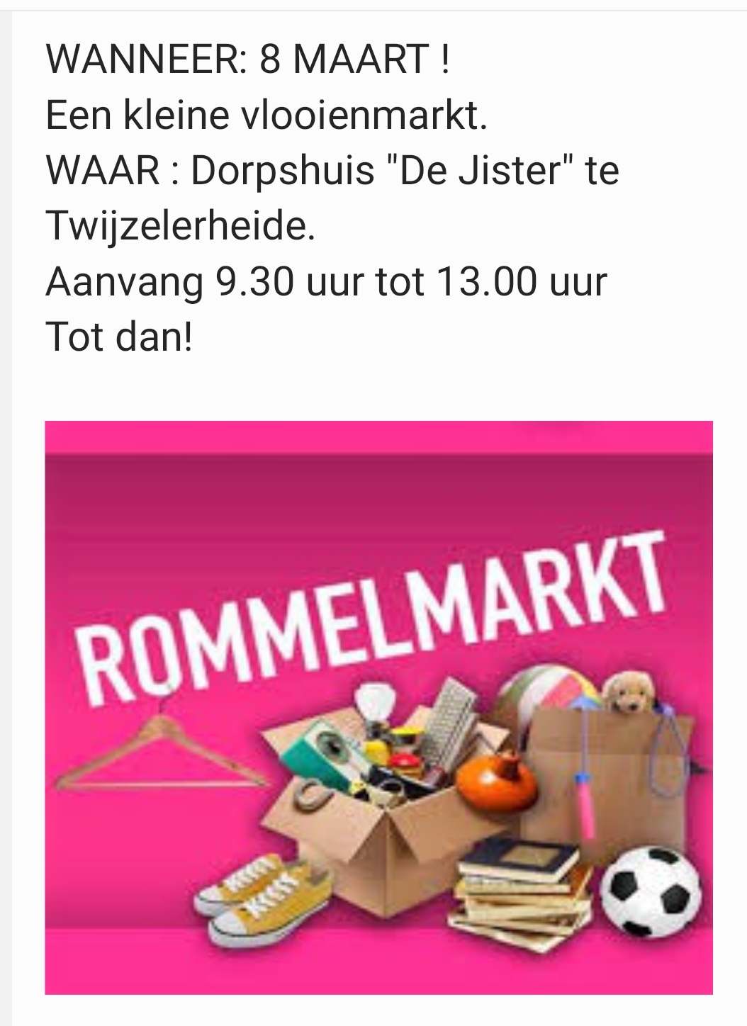 Vlooienmarkt in Twijzelerheide op zaterdag 8 maart