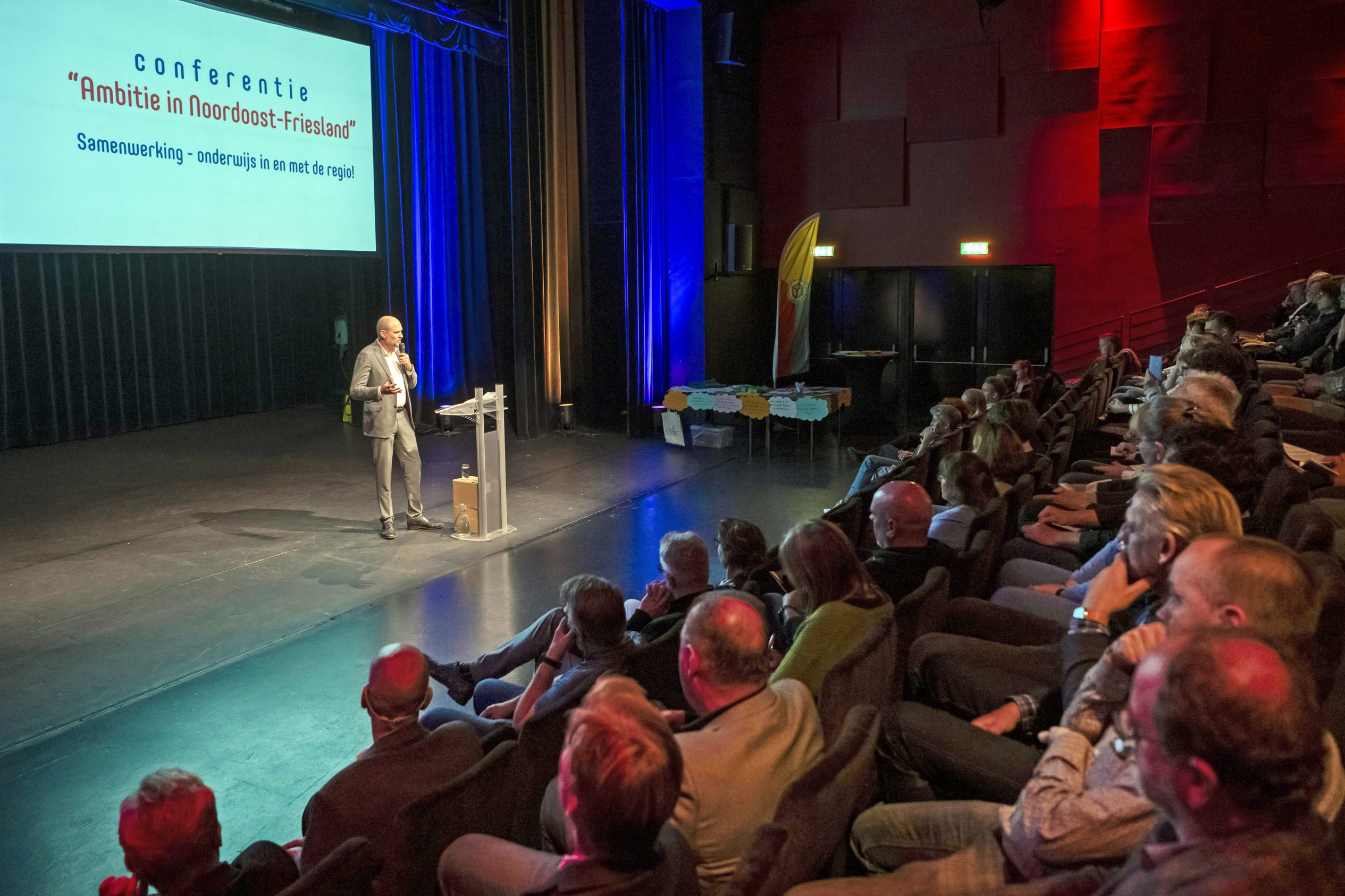 DOKKUM – Tien schoolbesturen ondertekenden donderdag met trots het ambitiedocument voor samenwerking tussen het primair en voortgezet onderwijs in Noordoost-Friesland. ‘Een ontwikkeling die gevierd mag worden’, ‘een voorbeeld voor heel Nederland’, waren de reacties. De ondertekening vond plaats tijdens de conferentie Ambitie in Noordoost-Friesland in theater Sense, waar 125 regionale professionals uit het onderwijs en bedrijfsleven samenkwamen. Op de conferentie werd gesproken over ontwikkelingen in het onderwijs en kansen in de regio, en kennisgemaakt met samenwerkingsprojecten die al gaande zijn tussen onderwijs en bedrijfsleven.