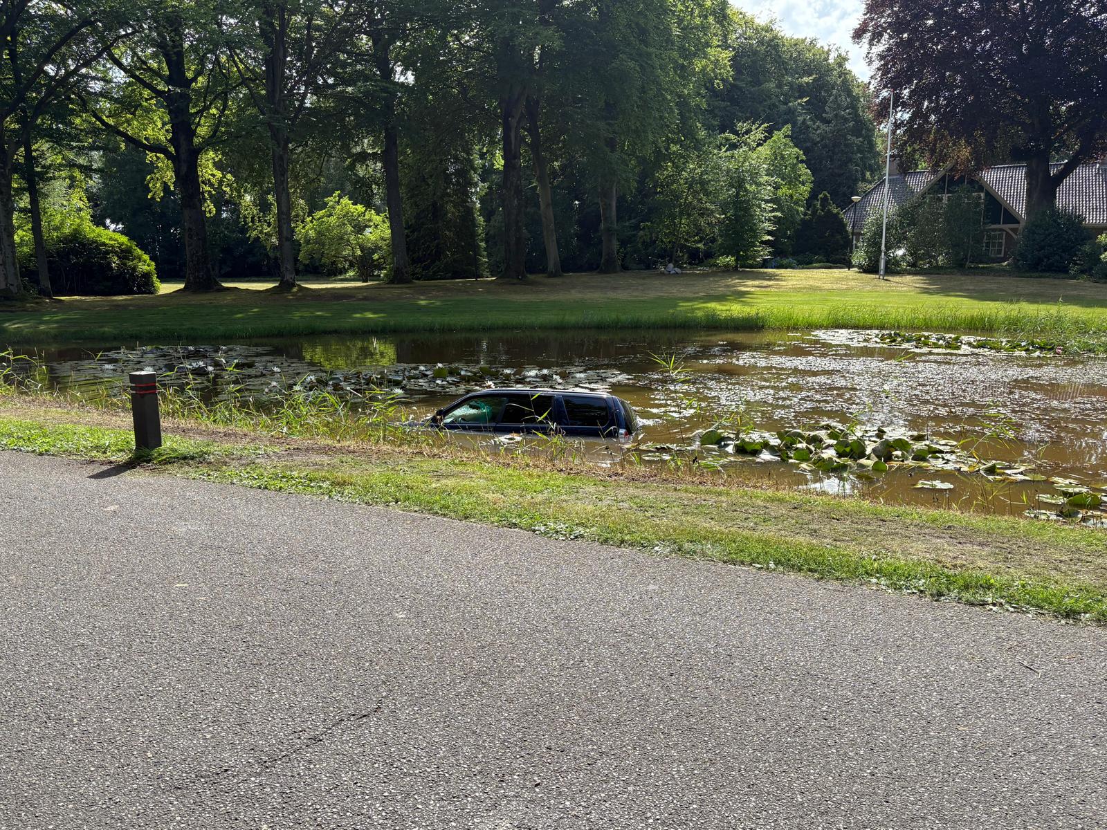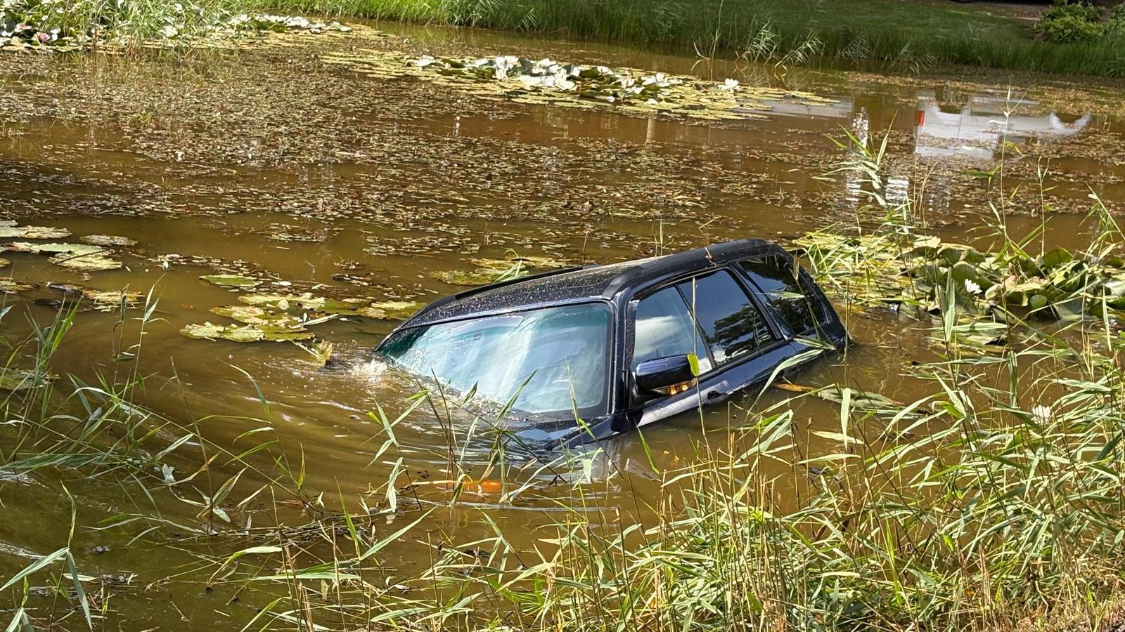 Daarbij botste de auto tegen twee paaltjes en belandde in het water. De bestuurder wist zelfstandig uit het voertuig te komen en raakte niet gewond.