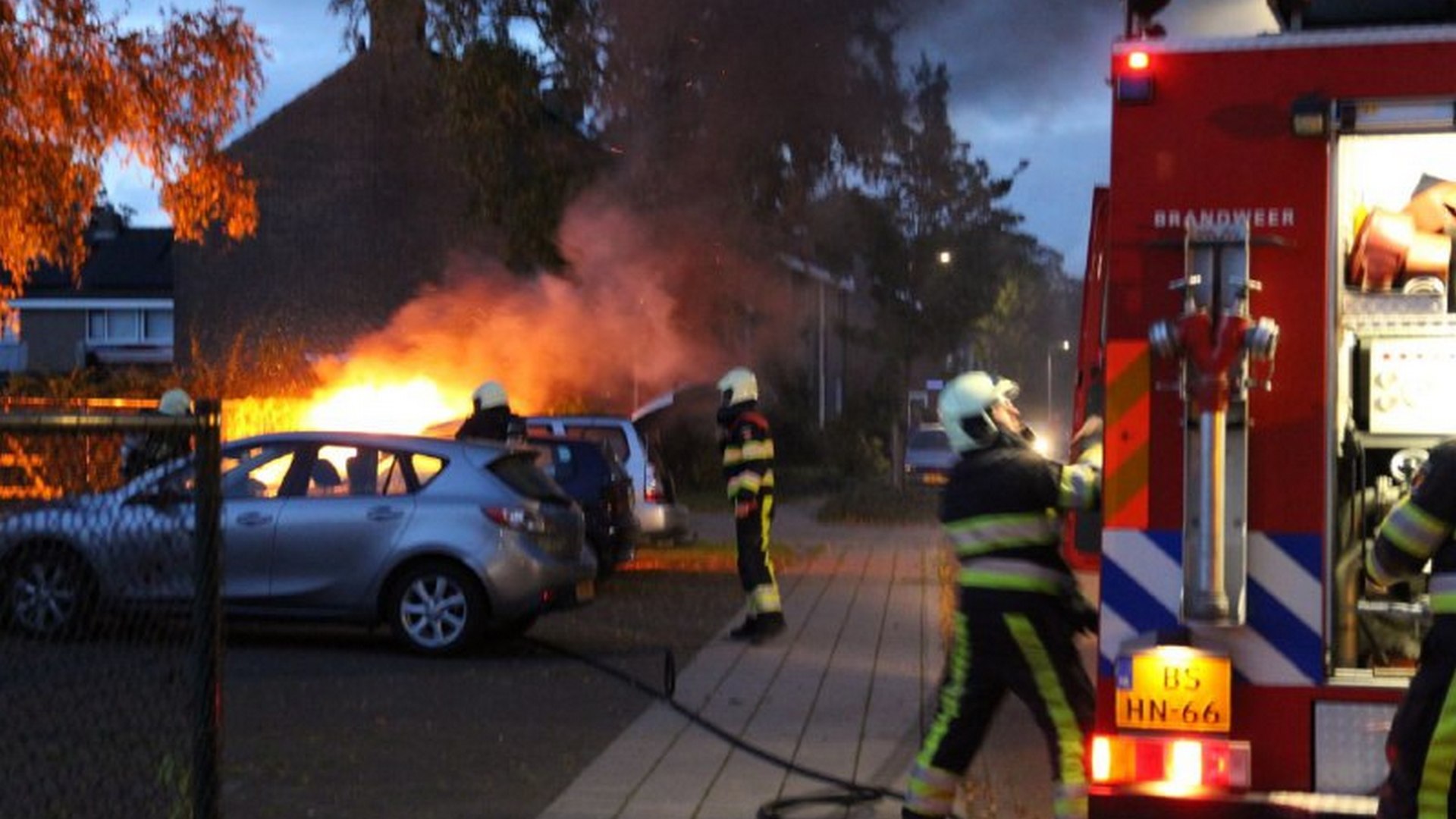Autobrand aan de Titus Brandsmastrjitte in Dokkum