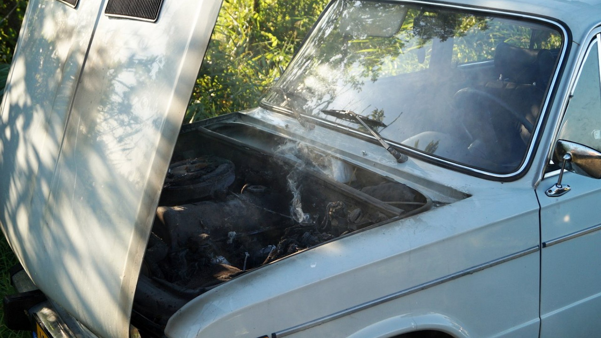 Autobrand in De Falom: Toeristen met Lada getroffen door brand tijdens rit