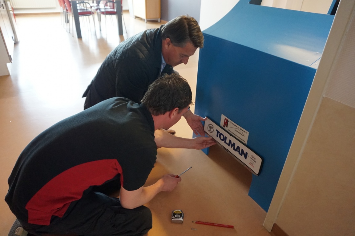 De auto is gemaakt door Bouwbedrijf Talsma Drachten en gespoten in ‘Nij Smellinghe blauw’ door Schilderwerken Drachten. Autobedrijf Tolman Drachten stelde de stoel beschikbaar voor onze patiënten en leverde woensdag 10 mei het nummerbord.