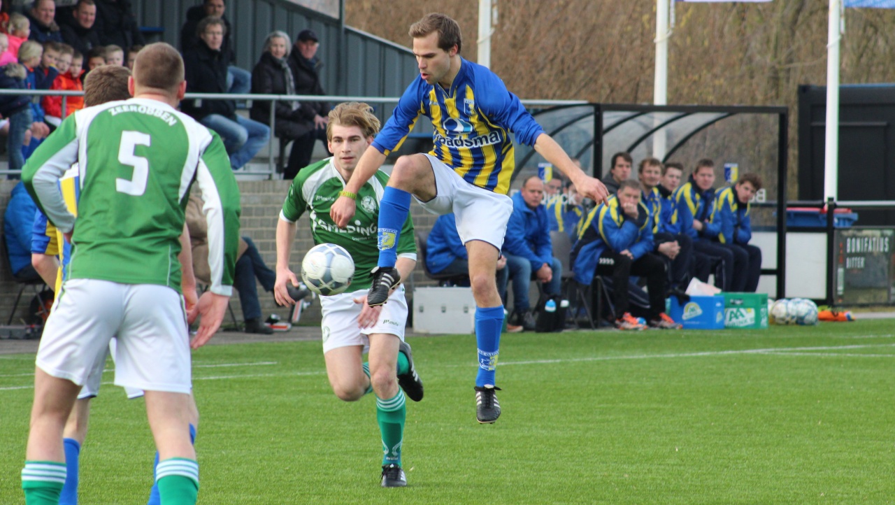 In de eerste helft waren de teams goed aan elkaar gewaagd. Be Quick had de zaken verdedigend prima voor elkaar en gaf vrijwel niets weg. Zeerobben, met vrij veel gemakkelijk scorende spelers in de gelederen, kon geen openingen vinden in de goed georganiseerde defensie van de thuisclub. Na ruim een kwartier kreeg Be Quick een kans op een voorsprong. Thomas Reitsma kreeg een vrije schietkans vanaf de rand van het strafschopgebied, maar zijn harde inzet werd over de lat getikt door keeper Jacob de Vries. Na ruim een half uur kwam Zeerobben op voorsprong. Een voorzet van Timo Bosma kwam voor het doel en werd na een scrimmage binnengetikt door Allard Sym Sprenger, 0-1. De Be Quick verdedigers waren erg verbaasd dat de treffer werd goedgekeurd, want er ging een overtreding aan vooraf en de schutter maakte bovendien hands, alvorens hij de bal over de doellijn schoot.