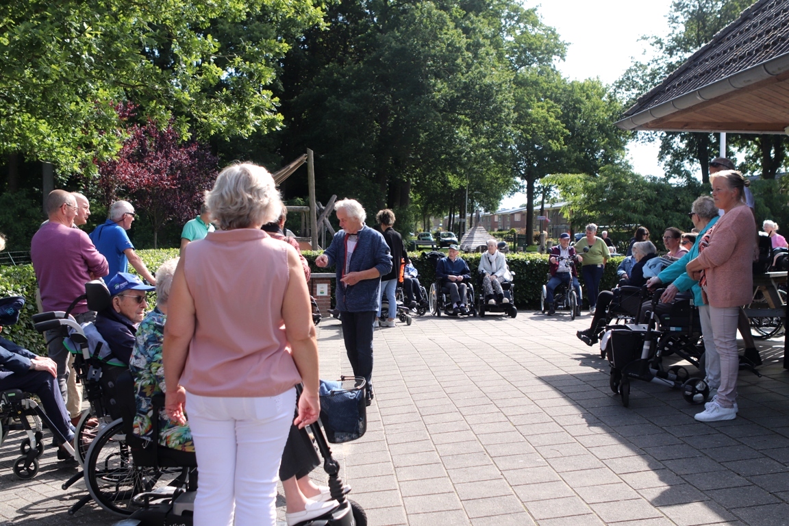 Zij gaven een rondleiding door het hertenkamp en vertelden over de dieren, hun leefomgeving, en het ontstaan en onderhoud van dit mooie park, dat vaak het “klein Artis” wordt genoemd. Omdat het een bijzondere dag was, mochten de bewoners door de hekken de hertenweide in, waar de meeste dieren buiten waren.