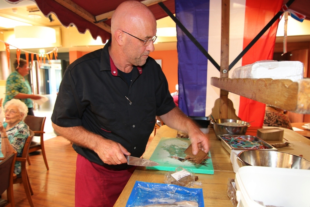 Donderdagmiddag 15 juni bood de Stichting Vrienden van Meckama State uit Kollum alle bewoners een Hollandse Nieuwe aan. Voor het proeven van de nieuwe haring werd er eerst een paar rondjes bingo gespeeld om prijsjes.