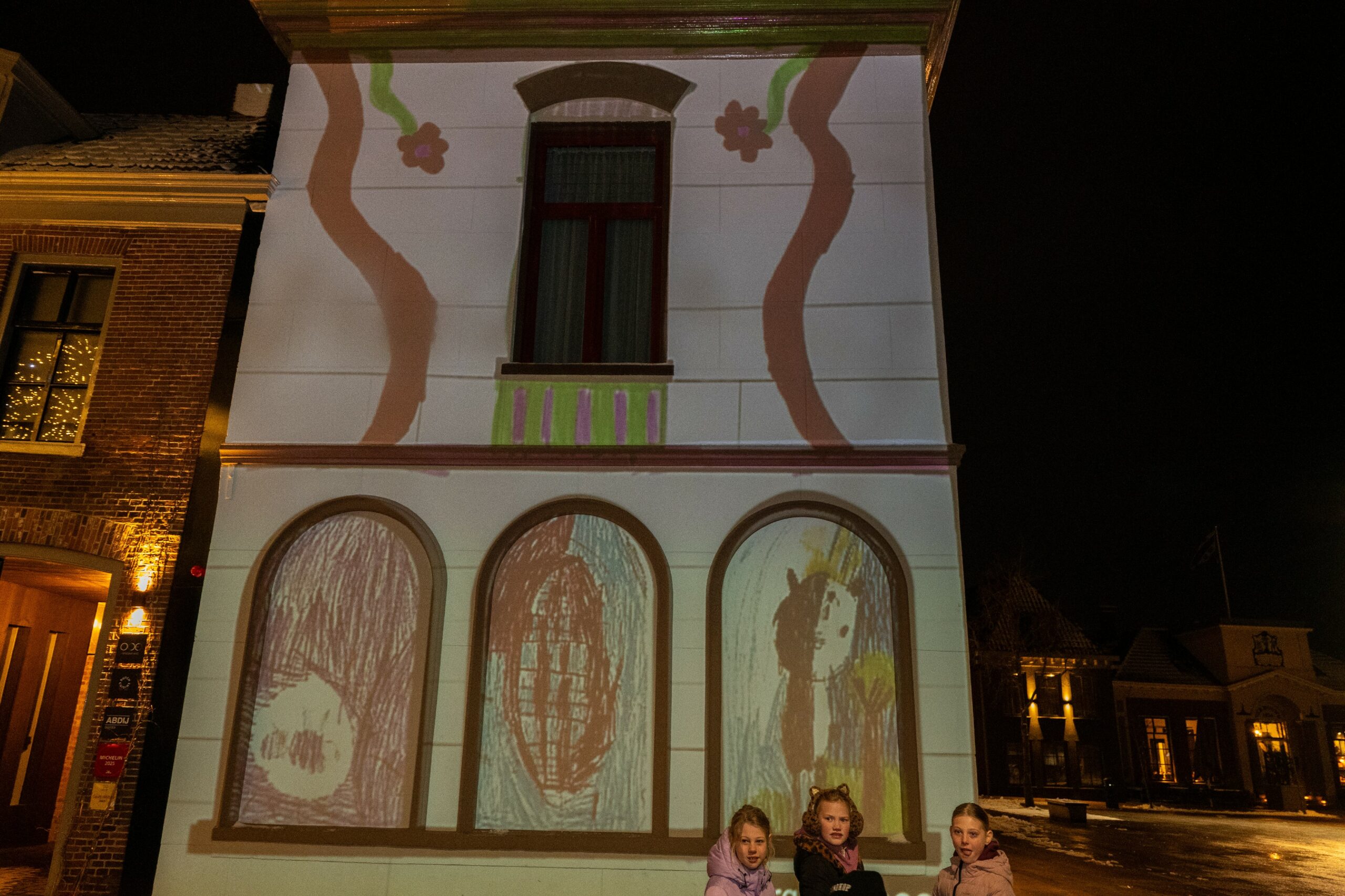 Dit jaar kent Winterljocht in Dokkum een primeur. Vier basisscholen uit de stad hebben een bijzondere plek gekregen in de route. Leerlingen van Bernewird, De Schakel, JKC Sint Bonifatius school en OBS Burgerschool maakten honderden tekeningen die samen zijn verwerkt tot een speciale projectie.