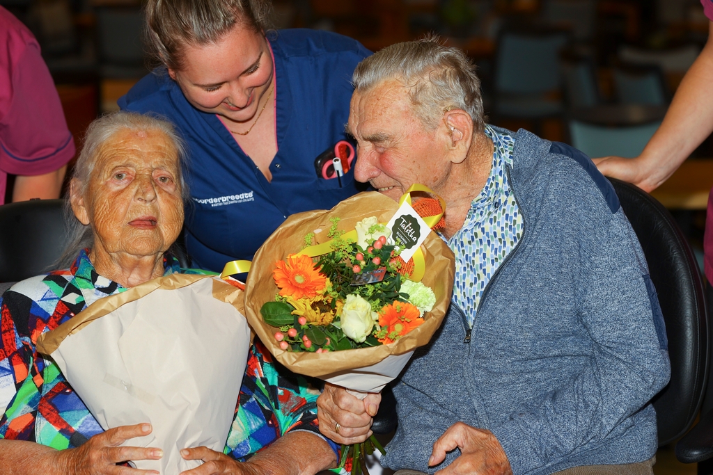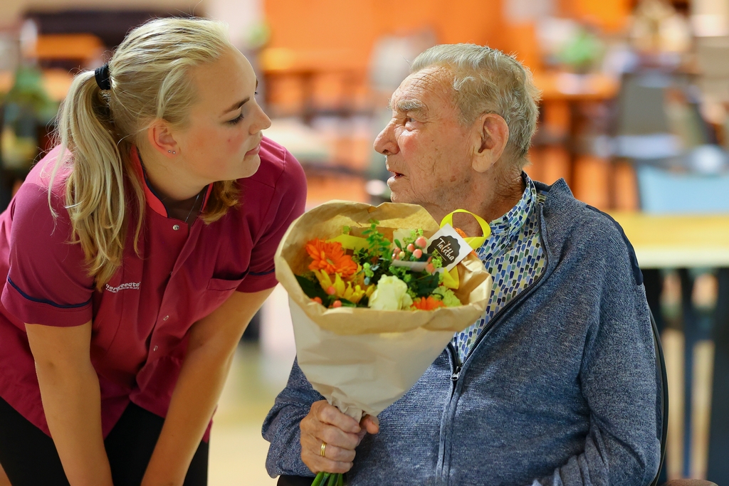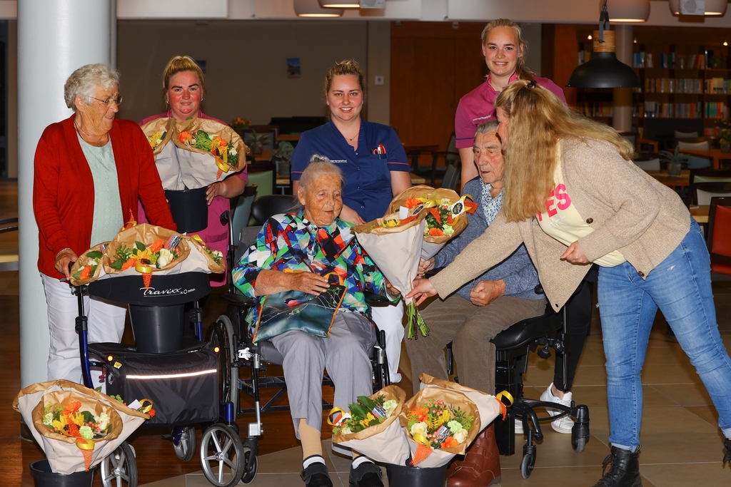 Namens de NAC autocross werden ruim 20 bossen bloemen aangeboden aan verzorgingstehuis Meckama State in Kollum. Enkele bewoners, Mevr. Veltman, Mevr. van der Zee en Dhr. Van Wieren, namen de bossen bloemen van harte in ontvangst. Met behulp van het zorgpersoneel werden de bossen verdeeld over de afdelingen.