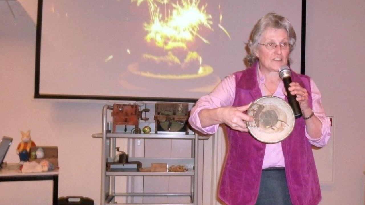 Culinair Etnoloog Carolina Verhoeven vertelde tijdens de diavertoning en over het meegebrachte handgemaakte oude keukengerei vele interessante wetenswaardigheden over de vele tradities uit de volkskeuken.