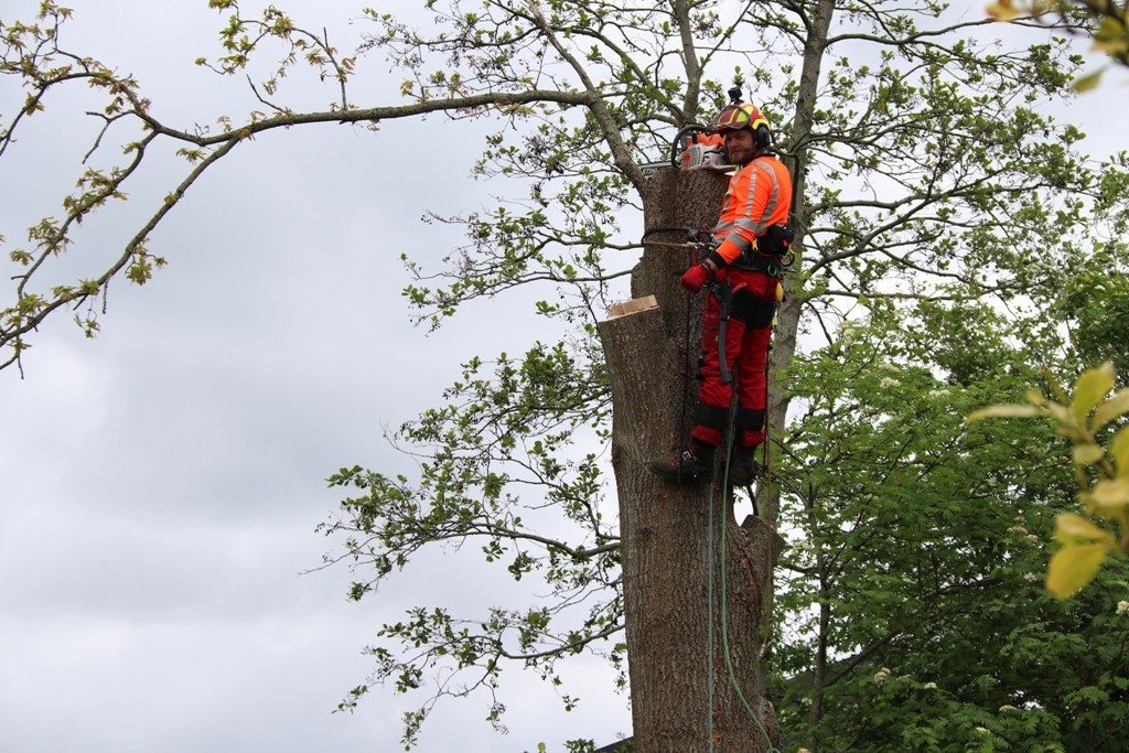 Door middel van diverse klimtechnieken werd de boom in kleine delen afgezaagd en geheel gerooid. De boom was van boven tot onderen gespleten en dat was voor de omgeving een gevaar, daarom moest hij gekapt worden.