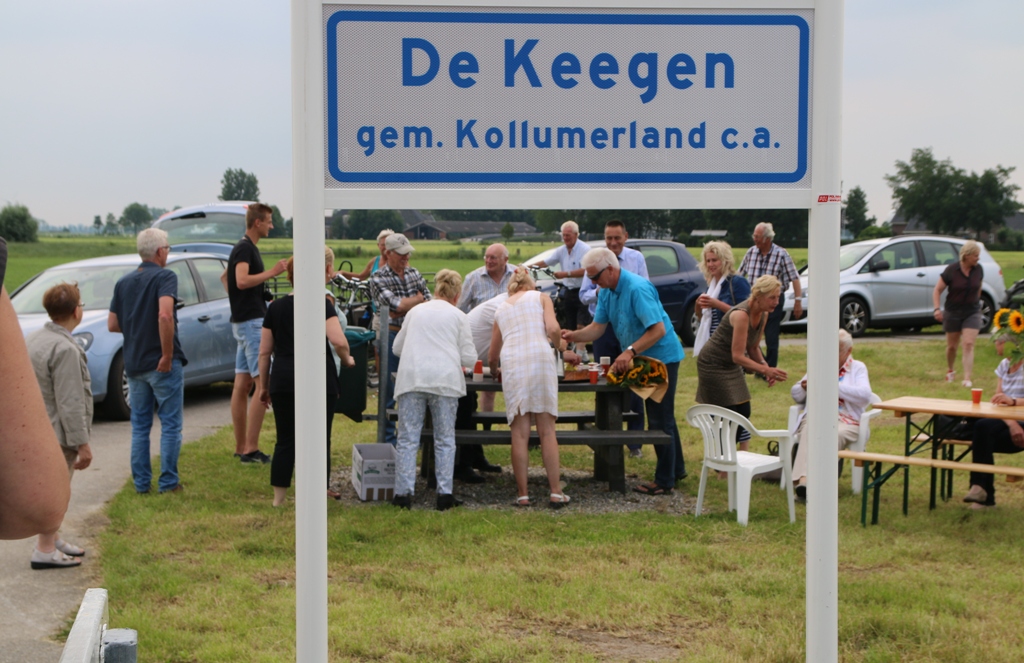 Vrijdagmiddag 7 juli onthulde wethouder Jelle Boerema samen met de voorzitter van plaatselijk belang Burum, Baukje Vlieg en dorpshistoricus Willem Kloppenburg het naambord van buurtschap De Keegen onder Burum (ter hoogte van de Keegensterweg 26).