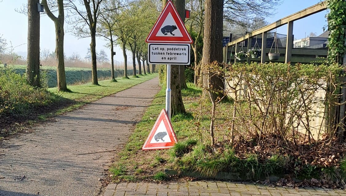 Borden voor bescherming amfibieën in Kollum weer teruggebracht