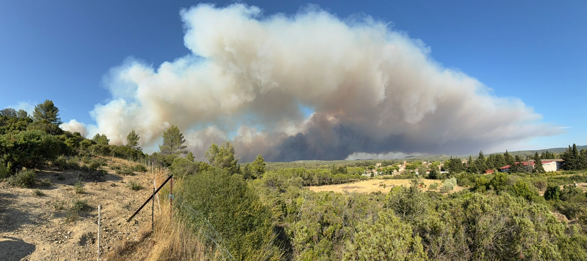Melle Kloosterman uit Buitenpost was daar met zijn camper op vakantie. “De eerste foto maakte ik onderweg naar Talairan, twintig minuten later was het vuur al drie keer zo groot”, vertelt hij. Vanwege het vuur kon hij niet terug naar zijn oorspronkelijke overnachtingsplek in Lagrasse. “Ik sta nu uit de wind, bij de burgemeester van Talairan op het erf”, zo laat Melle weten aan de redactie van Streekomrop RTV NOF. Hij zag met eigen ogen hoe huizen verloren gingen en mensen hun woning moesten verlaten.