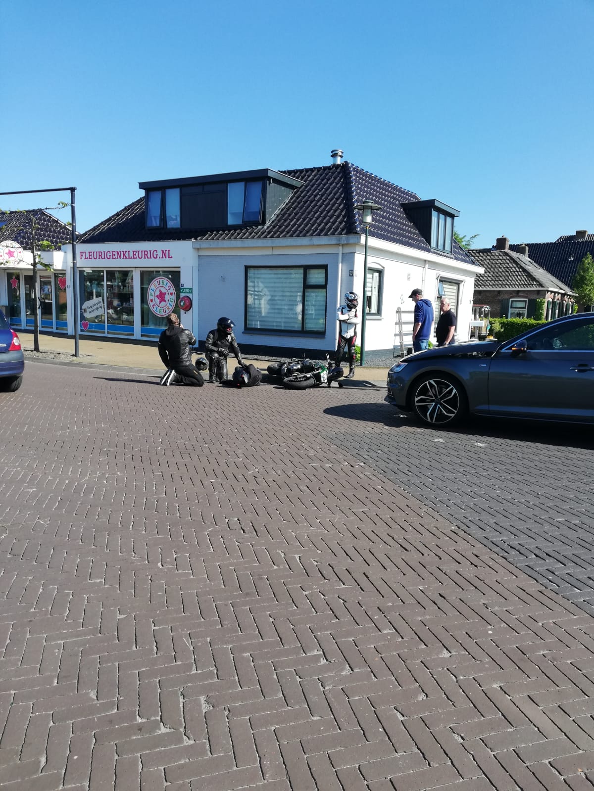Botsing tussen motor en auto in Kollumerzwaag