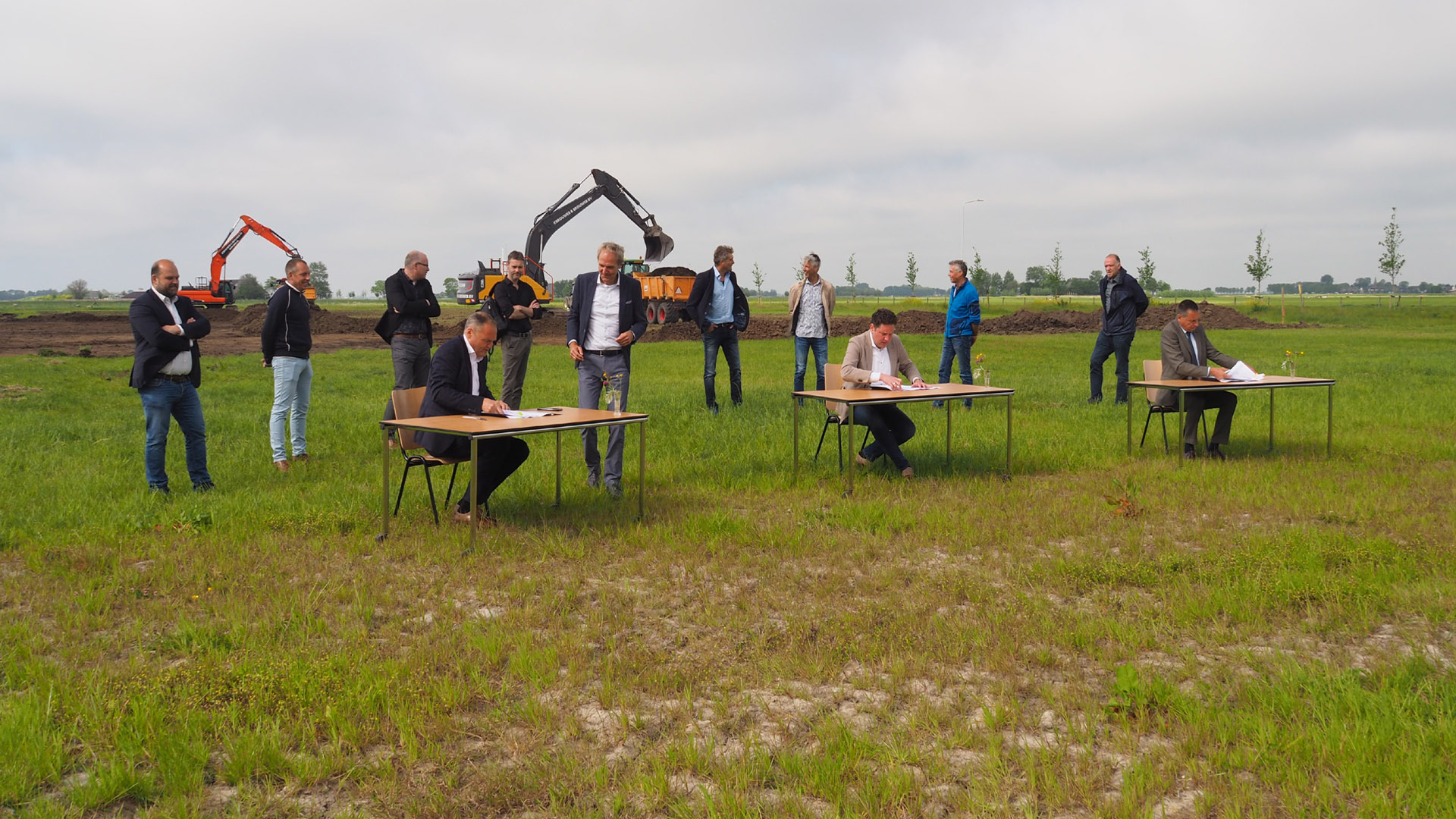 DOKKUM-Op woensdagochtend 27 mei 2020 ondertekenden werk-/leerbedrijf NoardEast Fryslân (NEF) en Bouwgroep Dijkstra Draisma de bouwovereenkomst voor de nieuwbouw van het bedrijfspand. NEF werd vertegenwoordigd door bestuurders Rommy Kempenaar en Jelle Boerema, Biense Dijkstra tekende namens de bouwgroep.