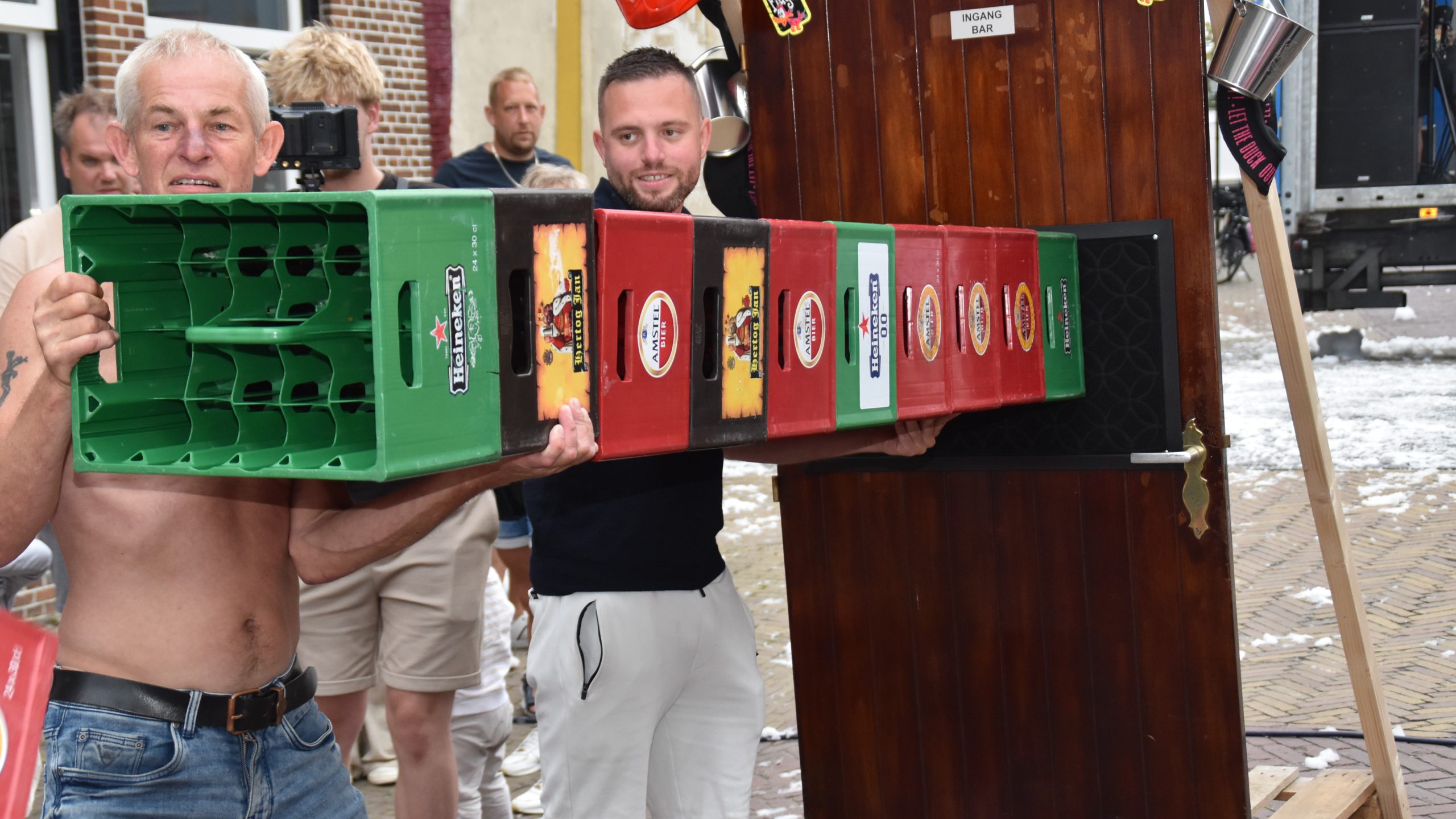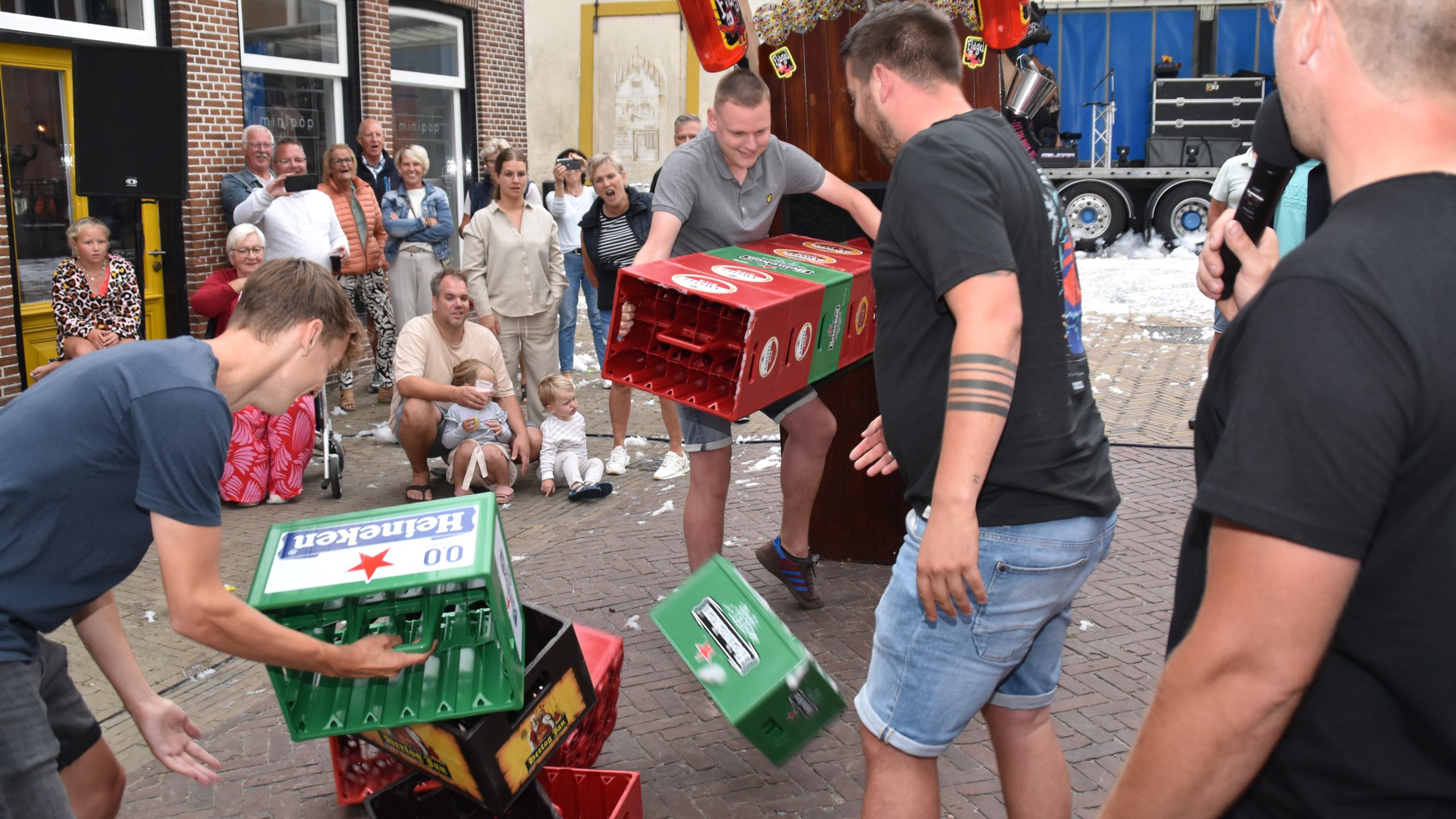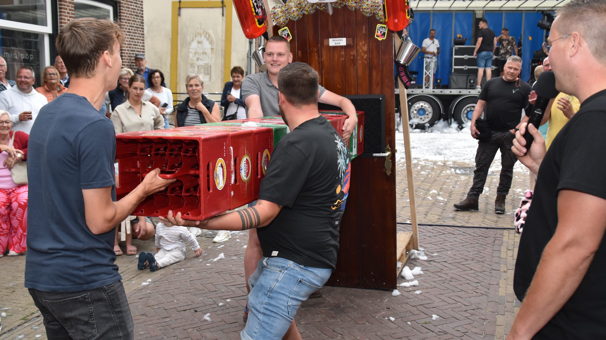 Bouwvak braderie, schuimparty en horizontaal bierkrat stapelen in Kollum