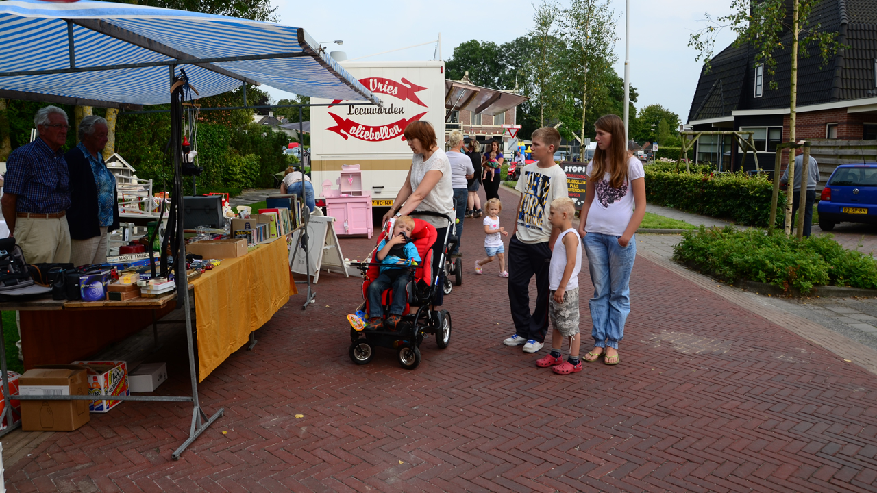 Op de Skûlestrjitte en de Stationswei was het een gezellige drukte waar jong en oud zich prima vermaakte. Door het prachtige weer was er grote belangstelling voor ijs, maar ook de kip aan het spit was niet te versmaden. Daarnaast was er een verloting waarvan de opbrengst naar Roemenië gaat.
