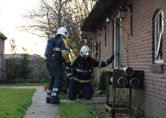 De stal onder de brandhaard was de winterverblijfplaats van ongeveer 70 koeien, die ook door de verstikkende rook werden bedreigd. Terwijl een gedeelte van het korps de brand probeerde te bestrijden, werd in de stal een begin gemaakt om de koeien los te maken en ook in veiligheid te brengen. Omdat er buiten geen brandkraan in de buurt zit, werd intussen ongeveer 150 meter brandslang aangelegd, zodat er voldoende bluswater uit een nabij gelegen sloot voorhanden was.