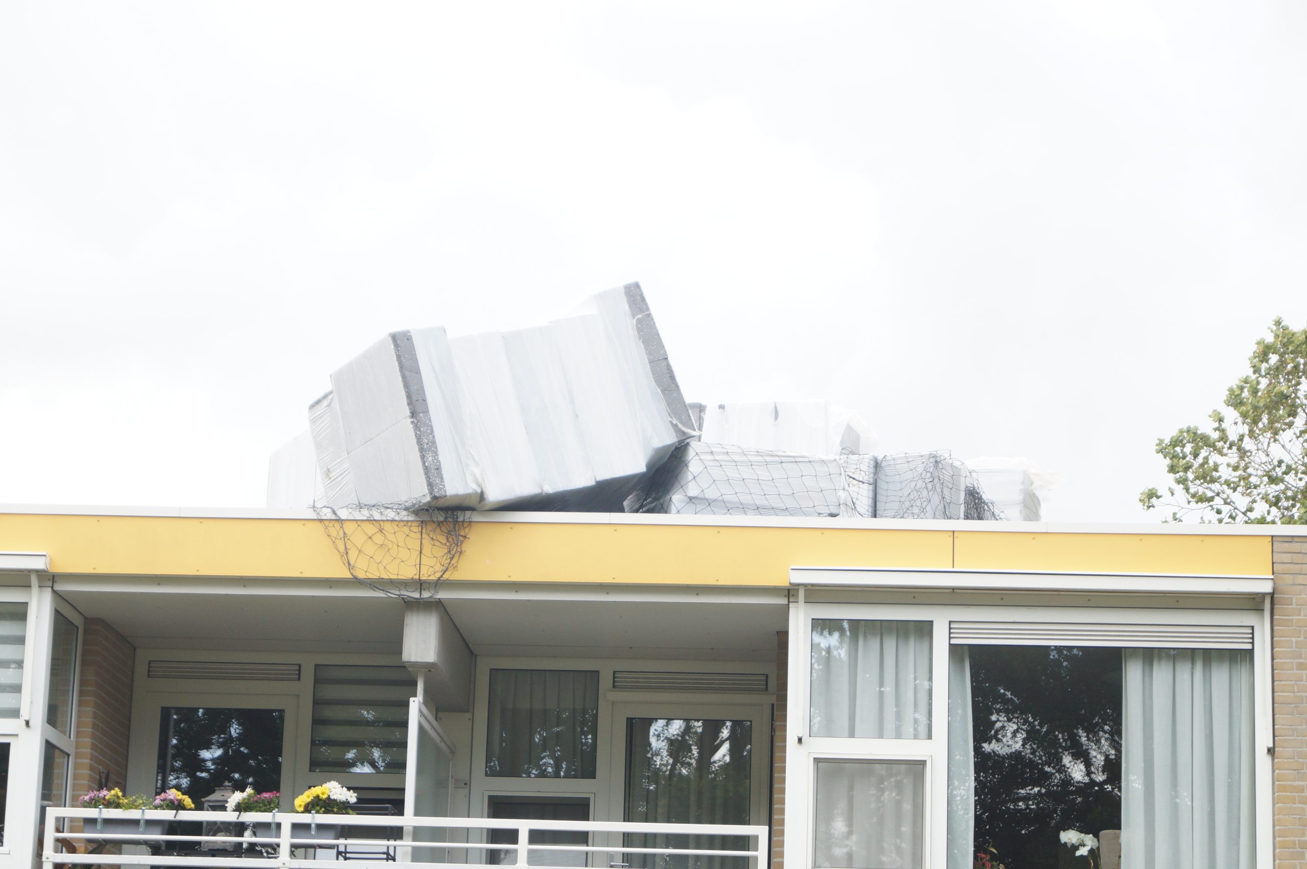 De bewoners van verzorgingscentrum Nij Tjaerda, dat direct onder het dak ligt, mochten tijdelijk niet naar buiten. De hulpdiensten namen deze maatregel om ongelukken te voorkomen.
