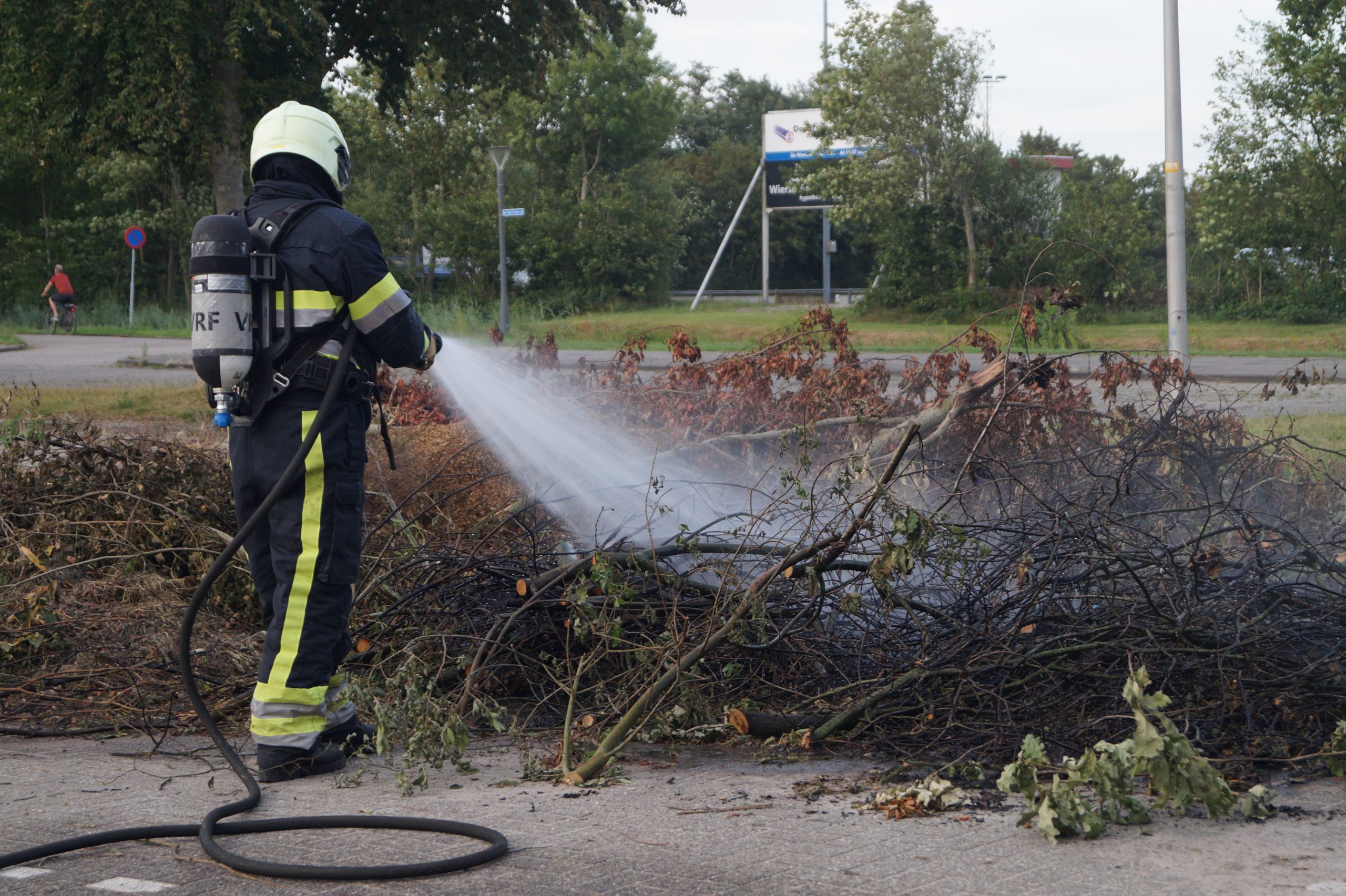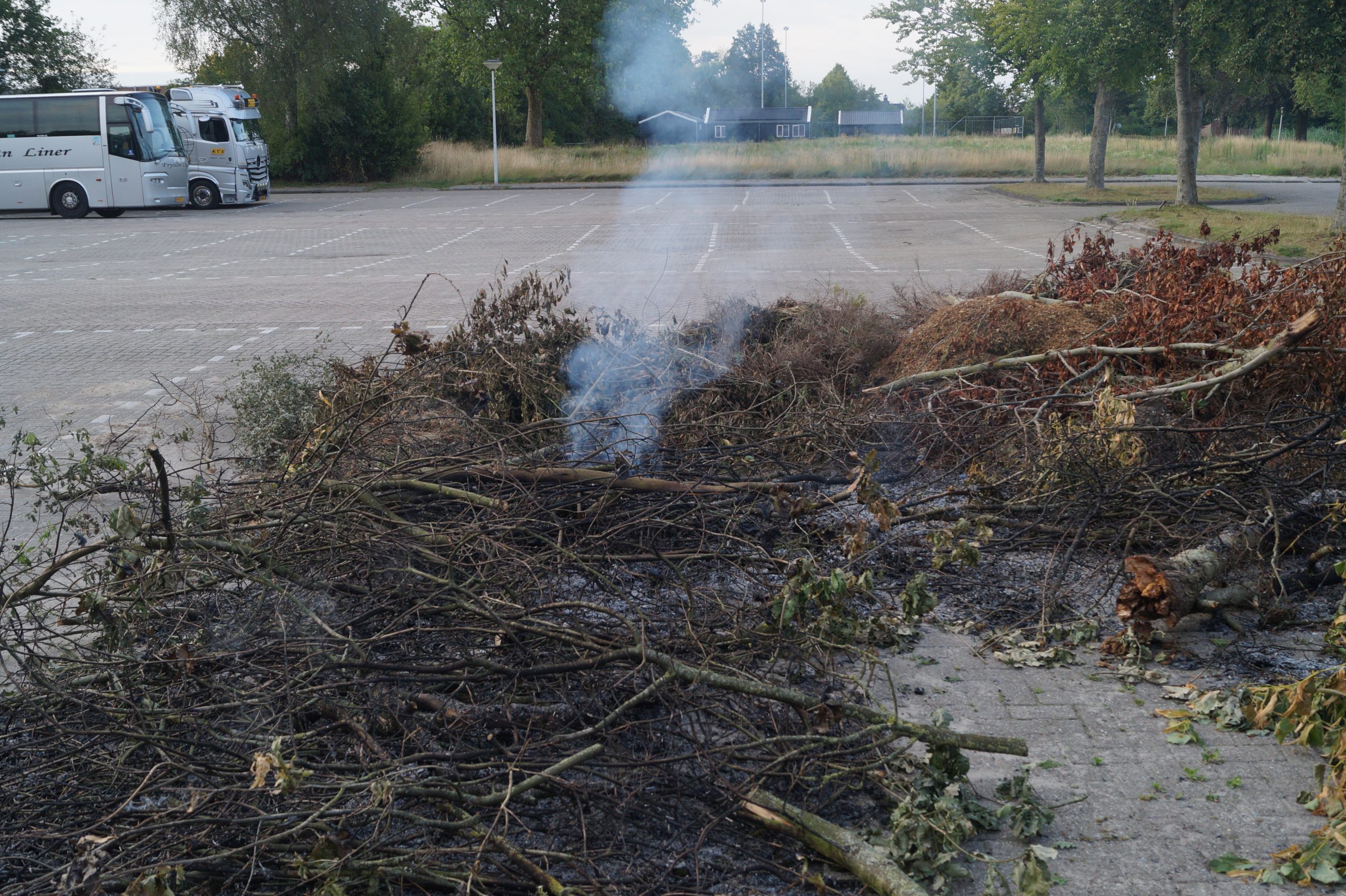 DE WESTEREEN – Afgelopen zondagavond vond er een incident plaats op het parkeerterrein aan de Sportloane in De Westereen. Een grote hoeveelheid takken bleek in brand te zijn gestoken. Om 20.46 uur ontving de brandweer van De Westereen een melding van de buitenbrand.