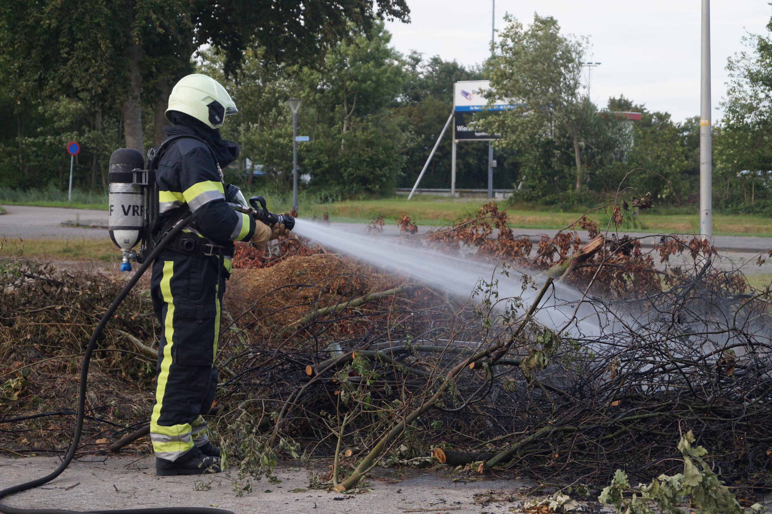 Brandweer van De Westereen blust brand op parkeerterrein aan de Sportloane