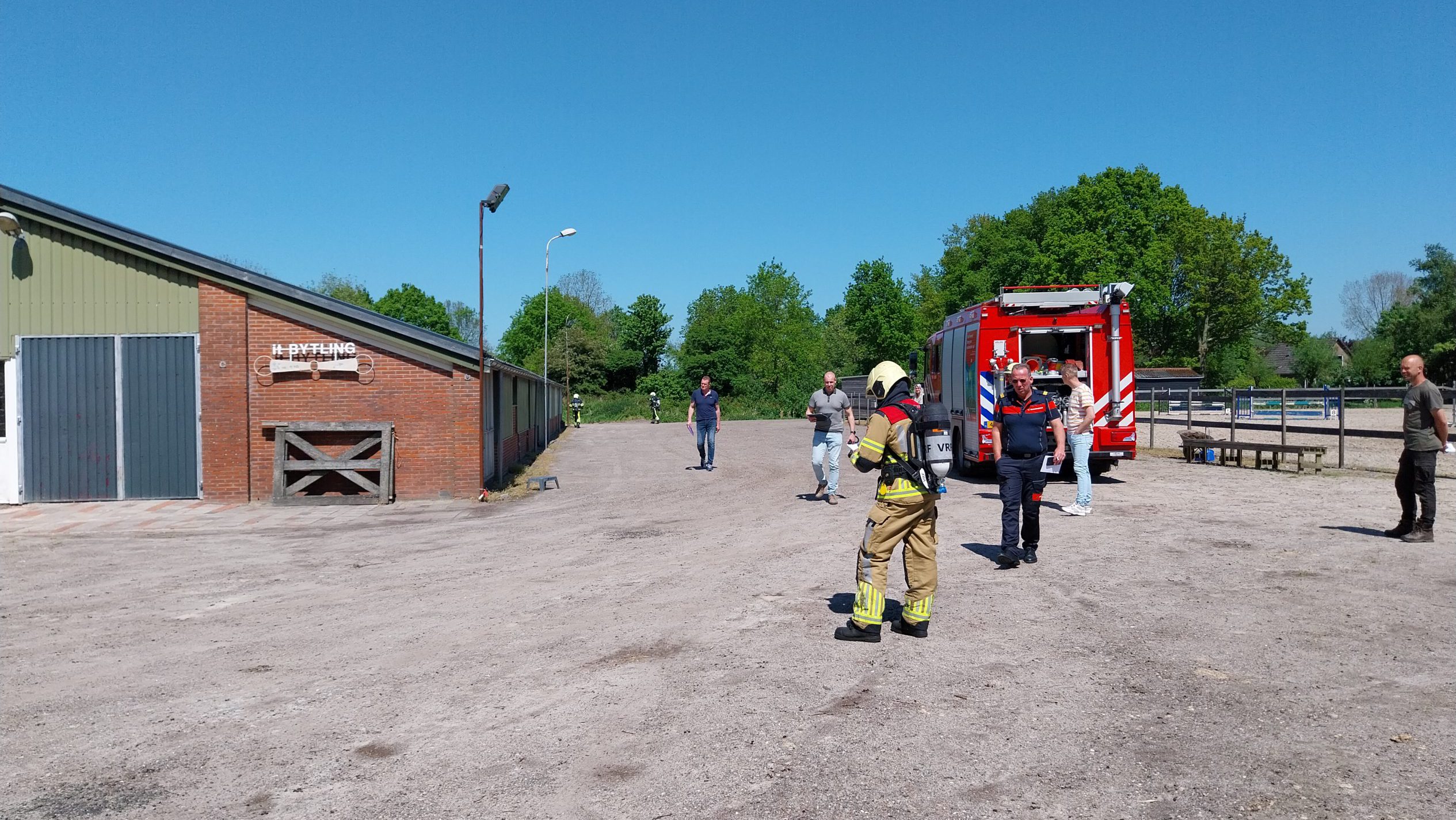 Scenario 2: Tijdens dezelfde oefening ontstond er brand in de keuken van manege It Bytling tijdens een bijeenkomst. De brand werd veroorzaakt door een frituurpan, wat leidde tot hevige rookontwikkeling en moeilijke evacuatie. Blussen met schuim werd aanbevolen. Nieuwe manschappen moesten de keuze van het blusmiddel maken. Slachtofferbehandeling van een persoon met brandwonden vond plaats na evacuatie.