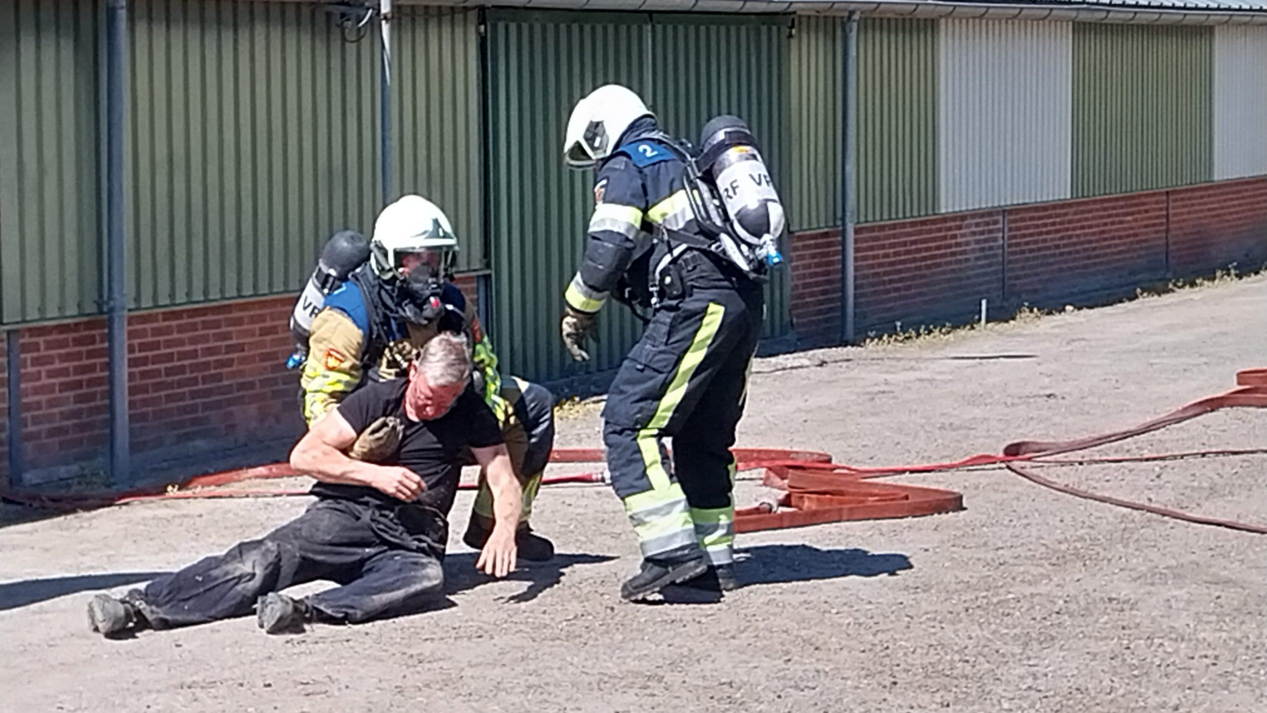 Scenario 3: Ook werd er geoefend met een prioriteit 1 melding van een brandgerucht in een bedrijfsgebouw aan Foarwei. Verdacht van een mogelijke wietplantage, durfde de eigenaar niet naar binnen. De brandweer vond een man met een gebroken been in de kelder.