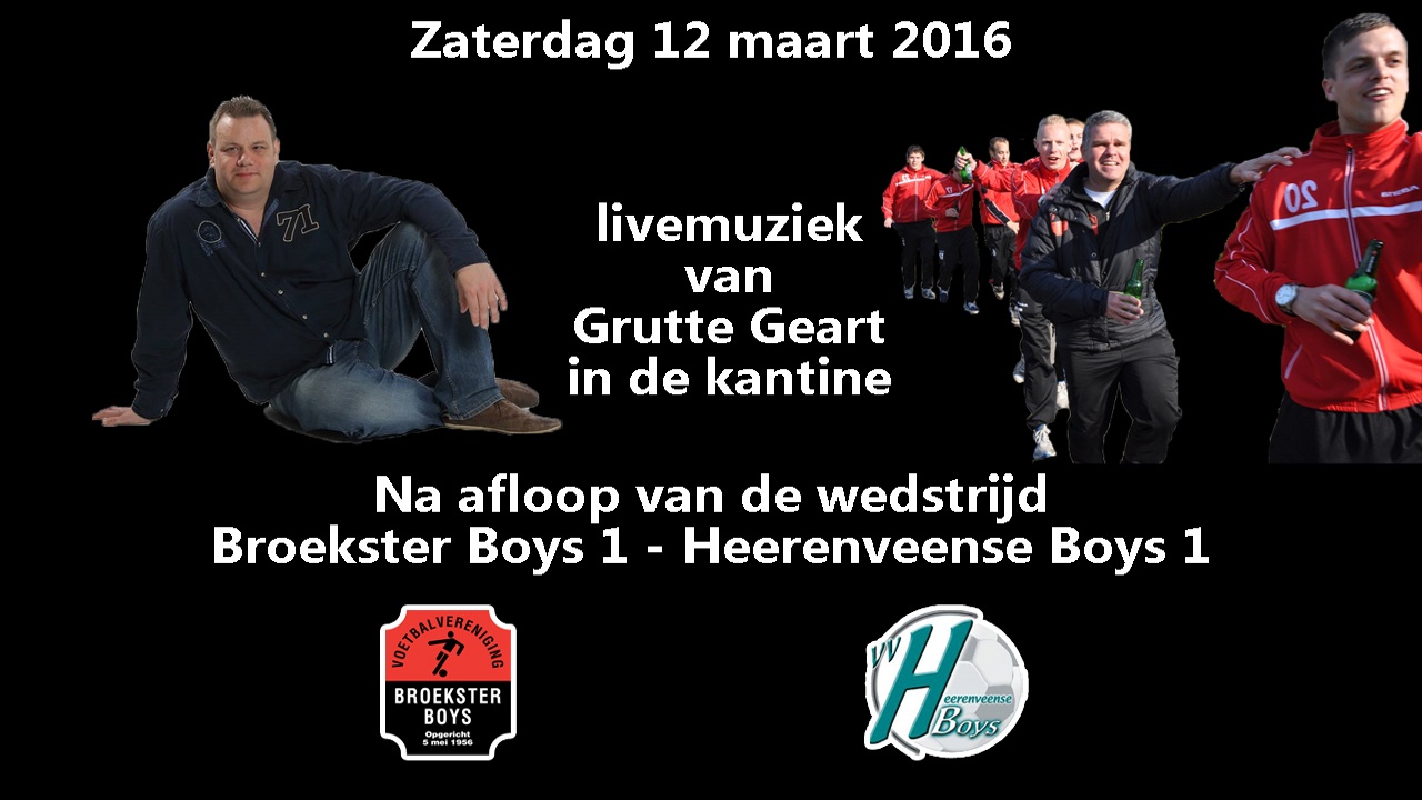Zaterdag 12 maart 2016 speelt Broekster Boys om 14:30 uur tegen Heerenveense Boys.
