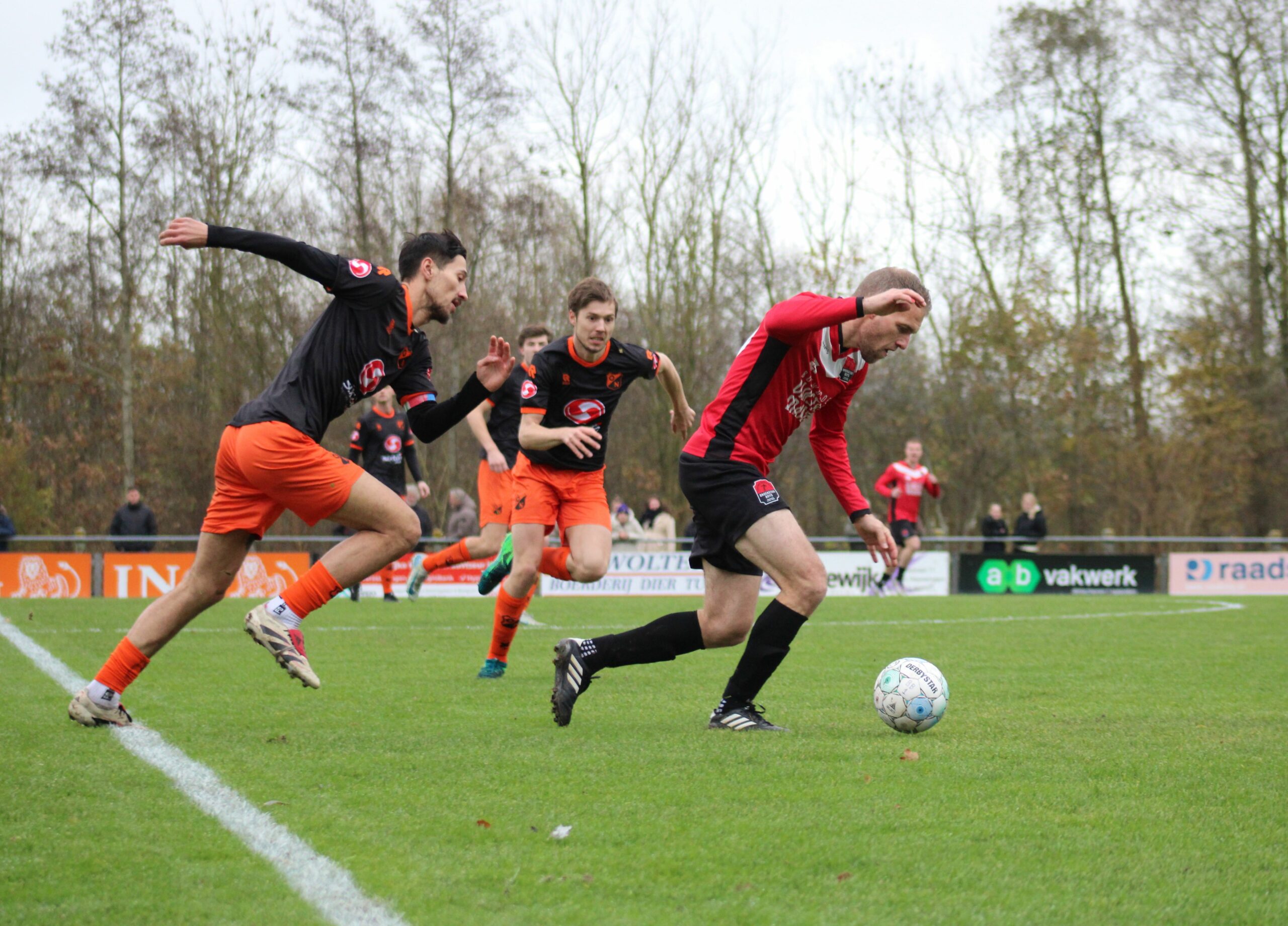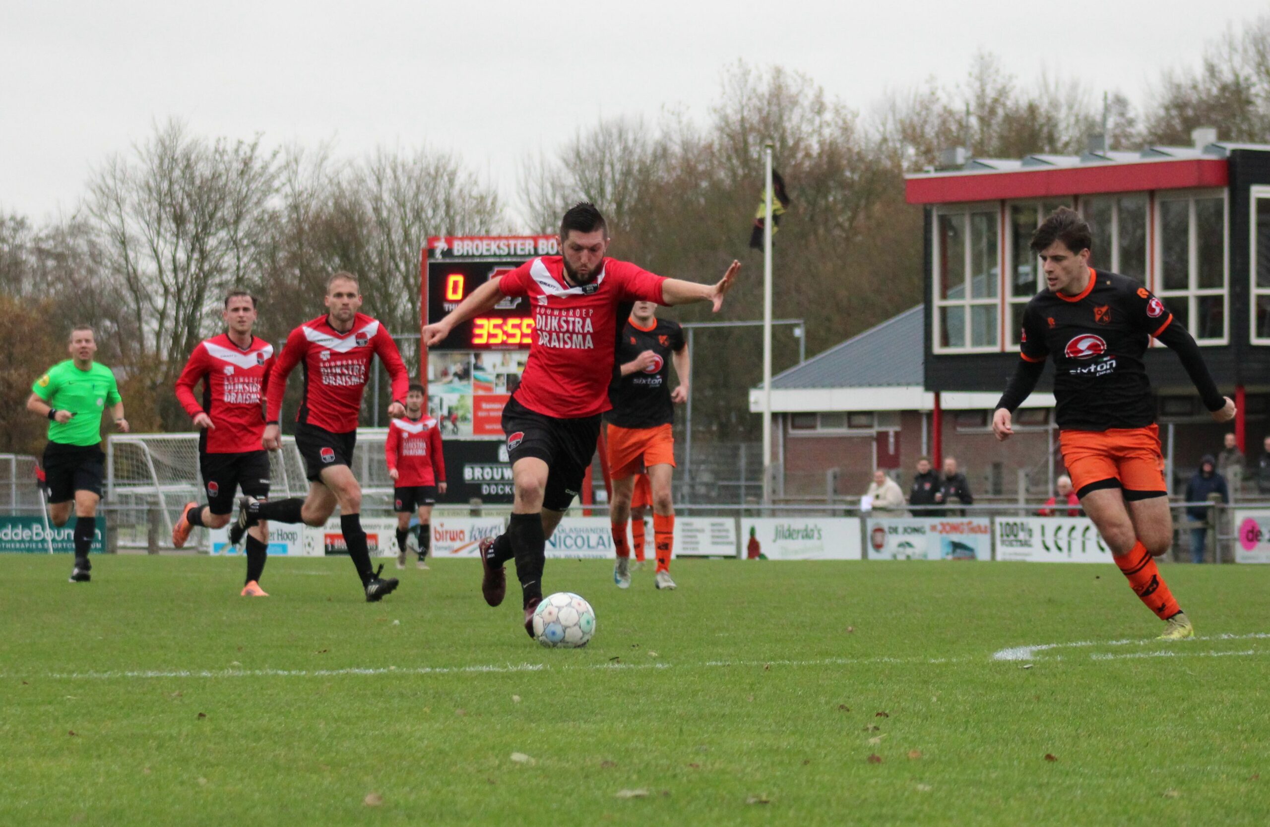 DAMWALD – De wedstrijden tussen Broekster Boys en Oranje Nassau Groningen zijn de laatste jaren lastig te voorspellen. Zoals bekend is er dit jaar een moordende concurrentieslag in de eerste klasse H en zal het ongetwijfeld heel lang spannend blijven hoe de prijzen verdeeld gaan worden. Een verliespartij betekend zomaar dat je 4 of 5 plaatsen kan kelderen en dus gaan veel ploegen naar een uitwedstrijd om niet te verliezen. Oranje-Nassau, dat al vroeg in Damwâld arriveerde slaagde afgelopen zaterdag in die opdracht met een bloedeloze 0-0. Voor de ouderen een bekende uitslag op de radio wanneer Frits van Turenhout op zijn typische wijze de uitslagen en met name een 0-0 uitslag, van de Ere-en Eerste Divisie bekend maakte.