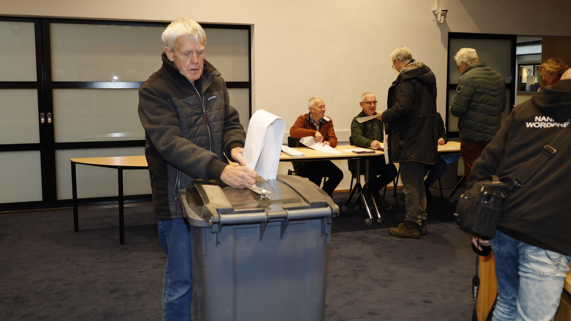 DAMWÂLD – Burgemeester Klaas Agricola stemde vanmorgen in Nij Tjaerda. Ook bezocht hij stembureaus en trakteerde de medewerkers op gebak.