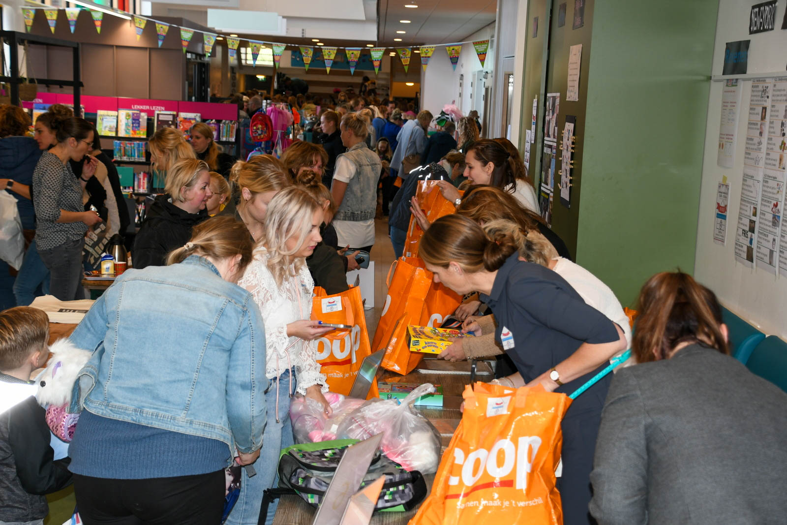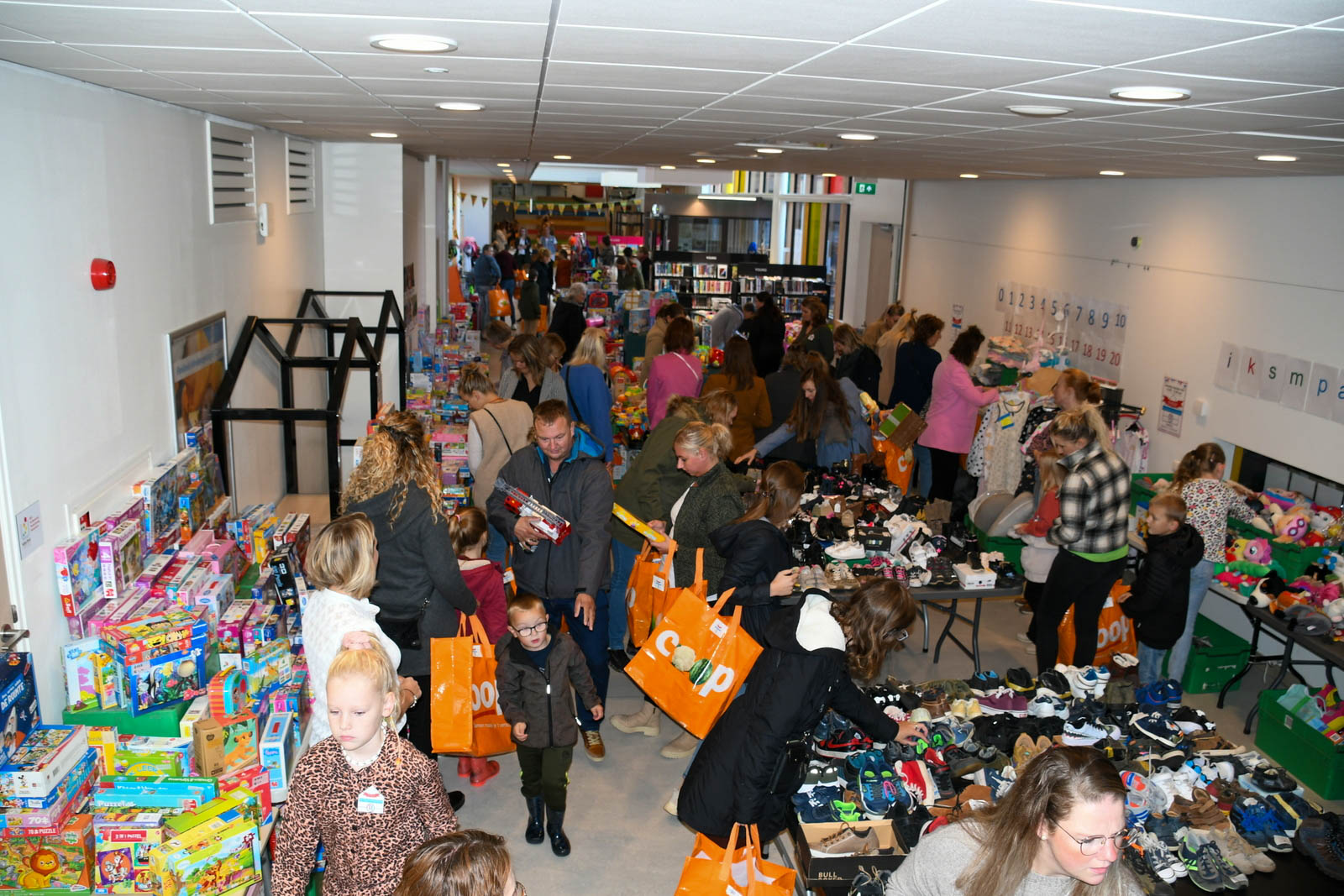 De organisatie was in handen van Simone Pit en Gerda Veenstra. Van 120 deelnemers waren er zo’n 600 ingebrachte tassen met kinderkleding, speelgoed, babyspullen en andere kind gerelateerde items. Deze waren in de dagen daarvoor door 70 vrijwilligers uitgepakt en gesorteerd op geslacht, maat en product. Alles werd overzichtelijk gepresenteerd op tafels en rekken met als resultaat een prachtige pop-up winkel waar iedere bezoeker ogen en handen tekort kwam. Er waren dan ook weinig big shoppers niet tot de rand gevuld met de mooiste spullen.