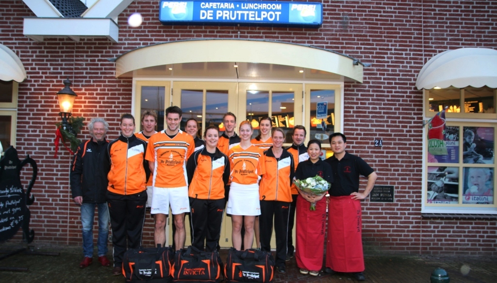 André Kalsbeek (trainer/coach), Marijke Brouwer, Jarich Hiemstra, Uulco Hoekstra, Wilma Grijpma, Danielle Broersma, Arjan Kiewiet, Gerdien Kuipers, Marieke van Straten, Jettie Hoekstra, Ruurd Meindertsma, Meihzen Zhou Chang en Feng Zhou (De Pruttelpot) afwezig op de foto is Wietze Jan Grijpma.
