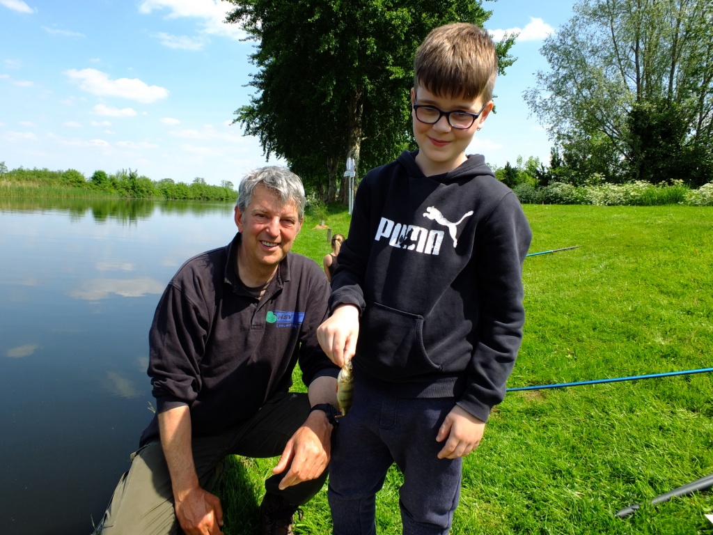 Al vrij snel was het Jelke Bijlstra, die een baarsje gevangen had. Maar ook Gerrit van der Bij en Gedy de Vries hadden een baars aan de hengel. Max van der Linden had een voorn gevangen van zo’n 25 cm lang. Alle vissen werden even in de emmer bewaard om iedereen te laten zien en daarna kregen ze hun vrijheid terug. Toevallig zat aan de overkant van de Swemmer een aalscholver, wat ’s morgens was besproken in de les.