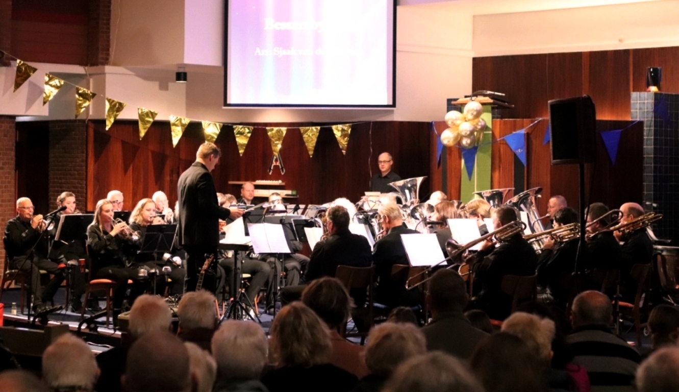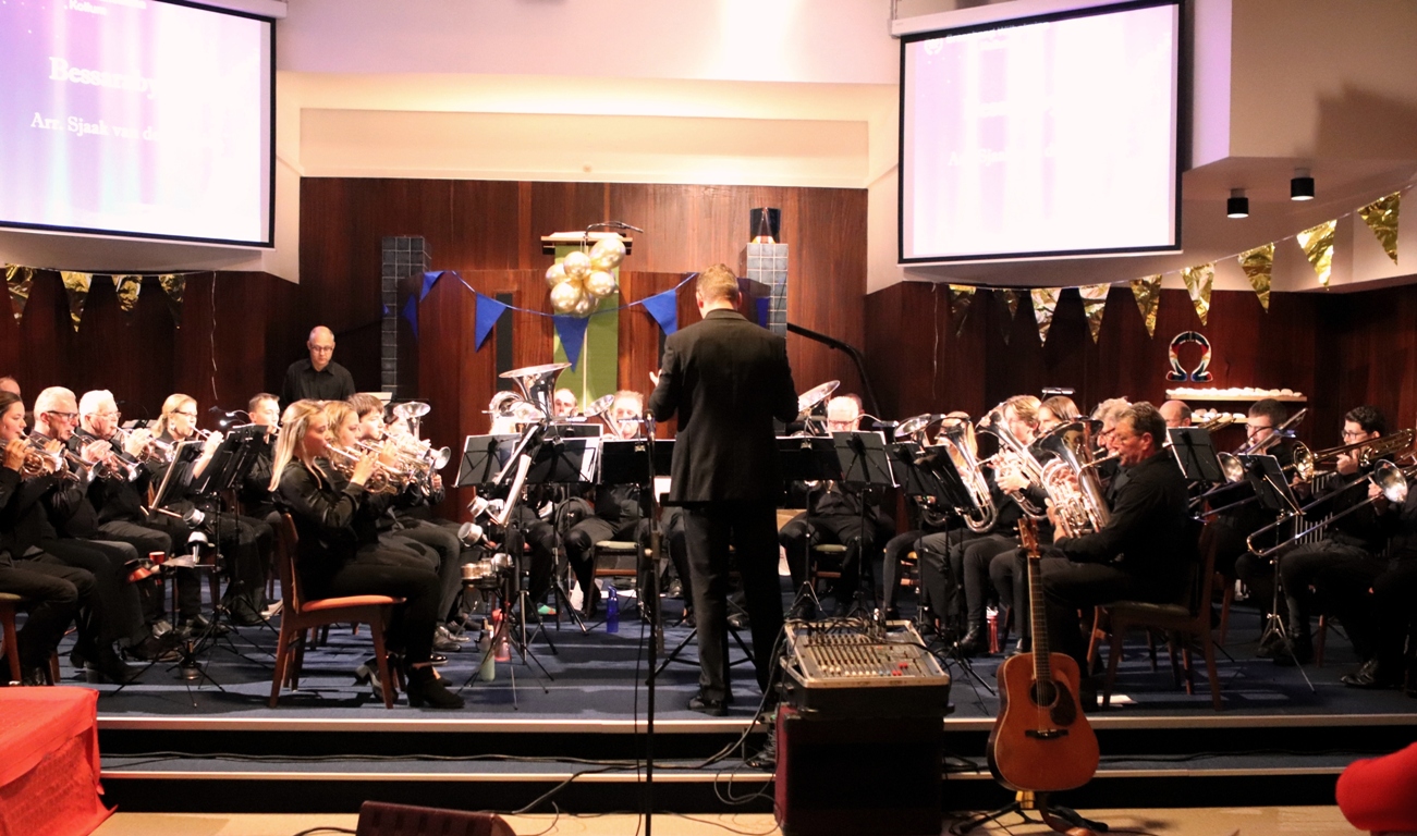 KOLLUM – Afgelopen zaterdag hield Chr. Brassband Wilhelmina uit Kollum haar 125 jarig jubileumconcert o.l.v. Koen van der Molen en i.s.m. Brassband De Bazuin o.l.v. Reimer Jan Rondaan. De toon van de avond werd gelijk gezet met het stuk Arsenal. Daarna werd het concert geopend door de voorzitter Douwe de Boer. Tijdens het concert werd het publiek mee genomen door de spreekster; Els Hoekstra. Zij praatte het concert aan elkaar en vertelde tussen door leuke anekdotes.