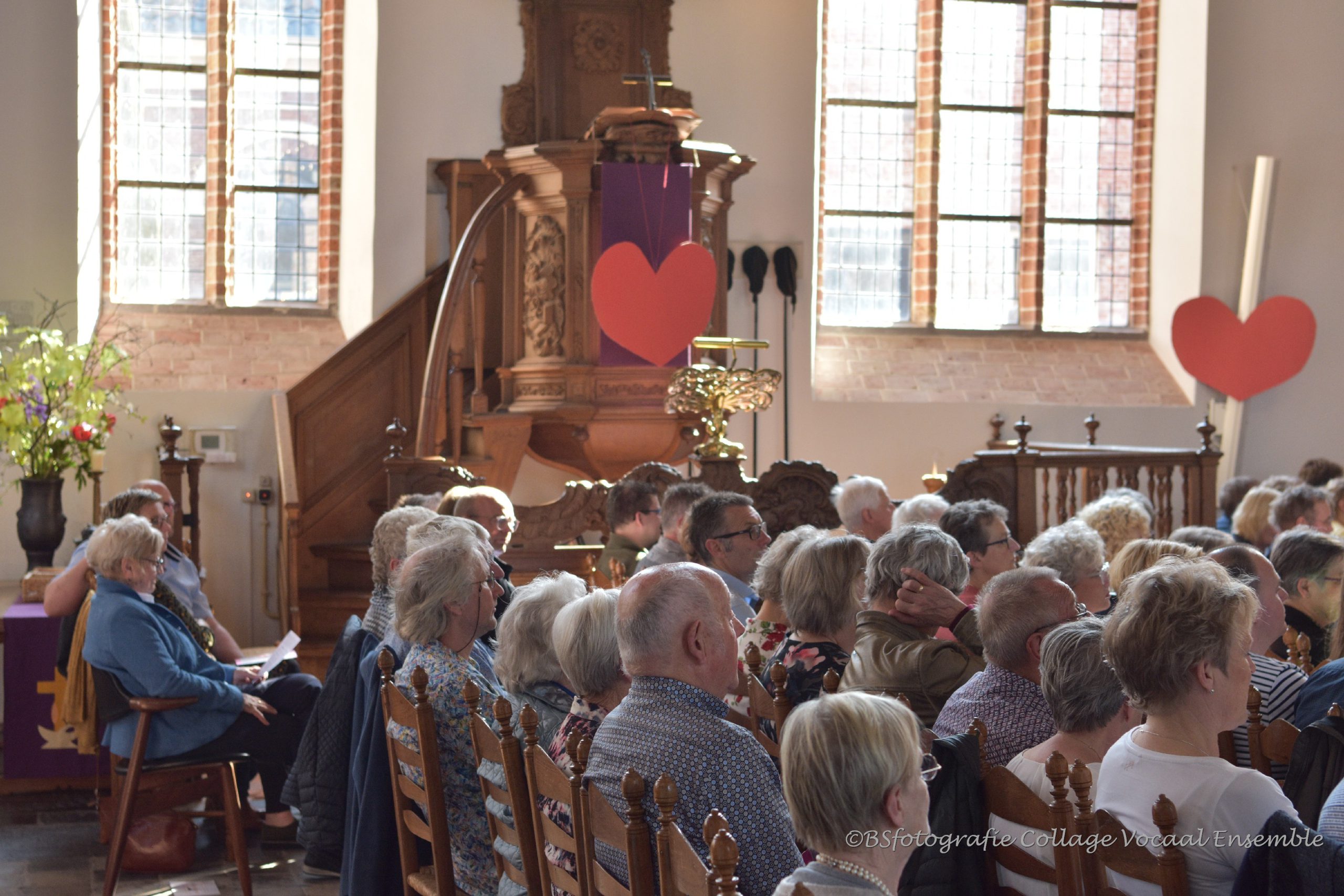 Ruim 100 honderd liefdevolle belangstellenden kwamen zondag luisteren naar het dubbelconcert van Collage Vocaal Ensemble en Harmonieorkest Euphonia Wommels in de Grote Kerk op de Markt. Het thema laat zich raden Alles is Liefde.