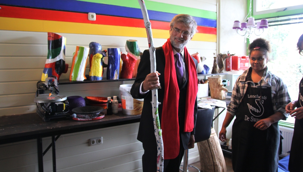 In De Swaen, dat naast een lunchcafé bestaat uit een atelier, bos- en tuinonderhoud en een boodschappenservice, vinden mensen met een verstandelijke en/of meervoudige beperking een op maat gesneden werkplek. De begeleiding is in handen van Mattie Postma en Sjoerd Keizer. Dagbesteding De Swaen is bijna een jaar geleden van start gegaan aan de Kleasterwei 6 in Veenklooster.