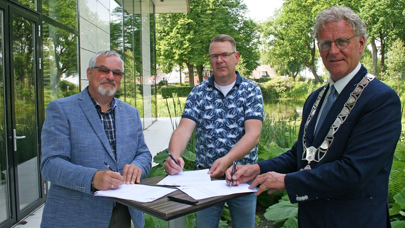 BUITENPOST – Tjeerd Leistra is maandagmiddag aangesteld als consul voor de Oorlogsgravenstichting in de gemeente Achtkarspelen, burgemeester Oebele Brouwer benoemde hem. ‘Door het in stand houden van oorlogsgraven, vertellen we het verhaal door.’ De officiële ondertekening gebeurde onder toeziend oog van Arie Harrewijn, inspecteur van de stichting.
