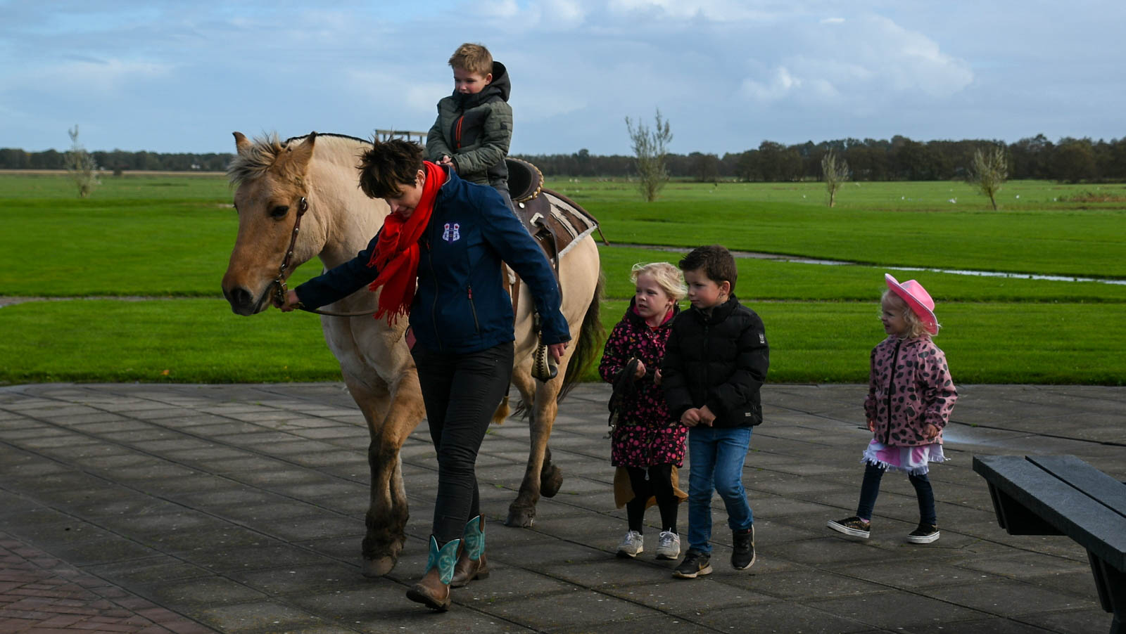 Ze hadden allerlei leuke spellen neergezet, die allen te maken hebben met activiteiten van cowboys of cowgirls. ’s Middags werd het voor sommige kinderen echt spannend, toen een bestuurslid met een echt paard bij de Tredder aankwam en de kinderen één voor één een rondje mee mochten rijden. Met goede begeleiding ernaast durfden een groot aantal kinderen wel een ritje te maken.