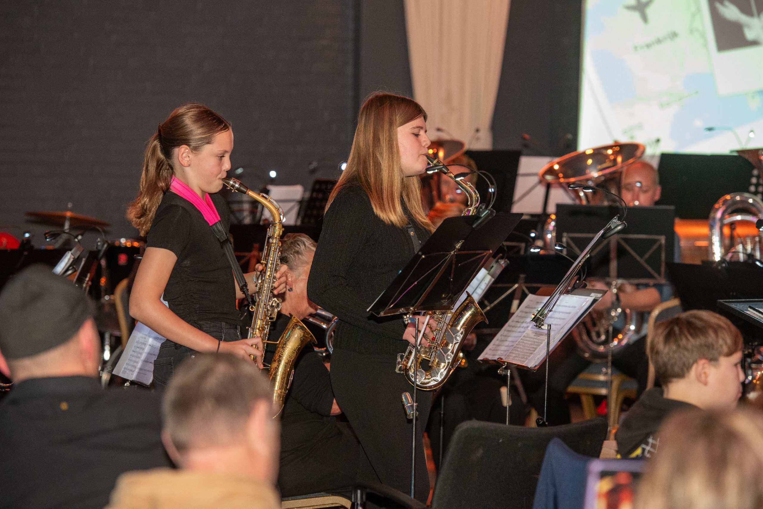 Een bijzonder hoogtepunt van de avond was het optreden van alt-saxofoonsolisten Hinke Stielstra en Anne-Lieke Kamma. Hun vertolking van Cent Mille Chansons wist het publiek te ontroeren. Na de pauze bracht het jeugdorkest een optreden met een Italiaanse sfeer. Terwijl de klanken van bekende melodieën de zaal vulden, werd het publiek getrakteerd op heerlijke stukjes pizza.