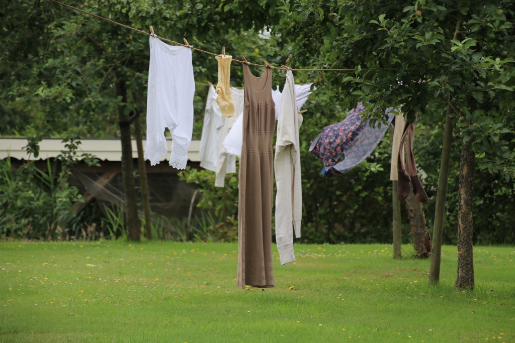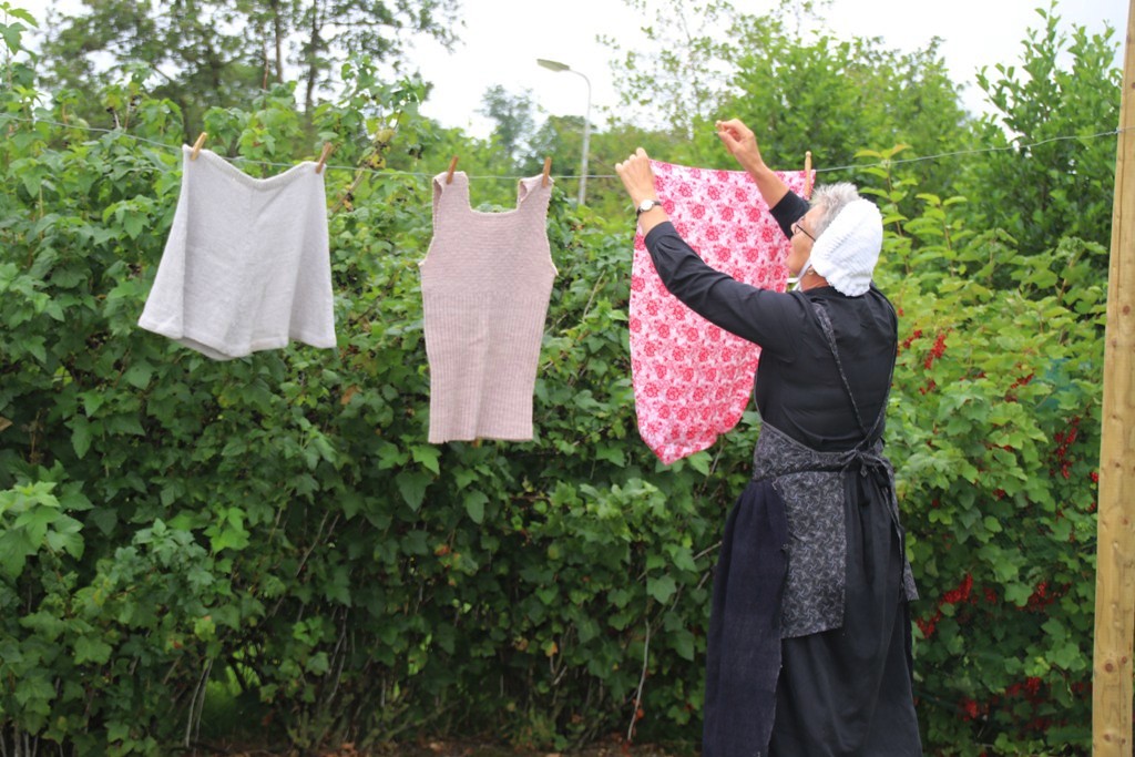 Het wasgoed werd gedaan en lag buiten te drogen en te bleken. Oude kleren konden worden bekeken op een rek. Tevens kan er kleding, stoffen en garen worden gekocht van een breiwinkel en voor het goede doel.