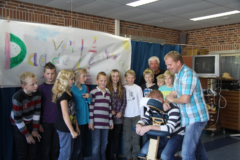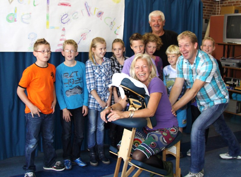 Woensdagmorgen werden de leerkrachten van de Prins Bernhardschool in het zonnetje gezet.Onder het motto: “Een gezonde geest in een gezond lichaam” nam ergotherapeut Sieto Reitsma de leerkrachten een voor een onder handen.De leraren vonden het een geweldige ervaring en waren na afloop van de behandeling dan ook zeer tevreden en ontspannen.